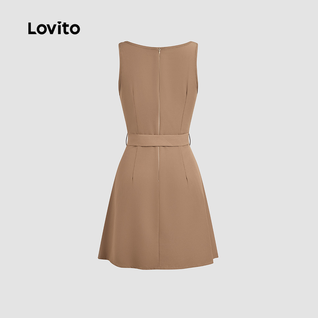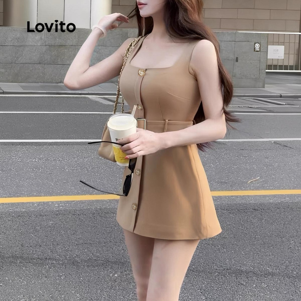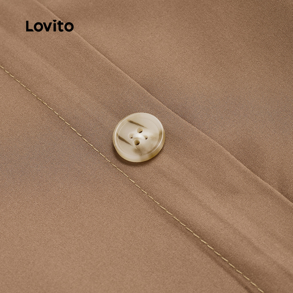 (New) Lovito Vestido Casual com Botões para Primavera/verão em Caqui para Mulheres L142ED202