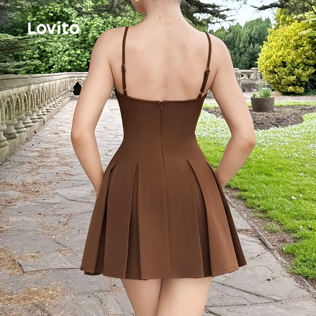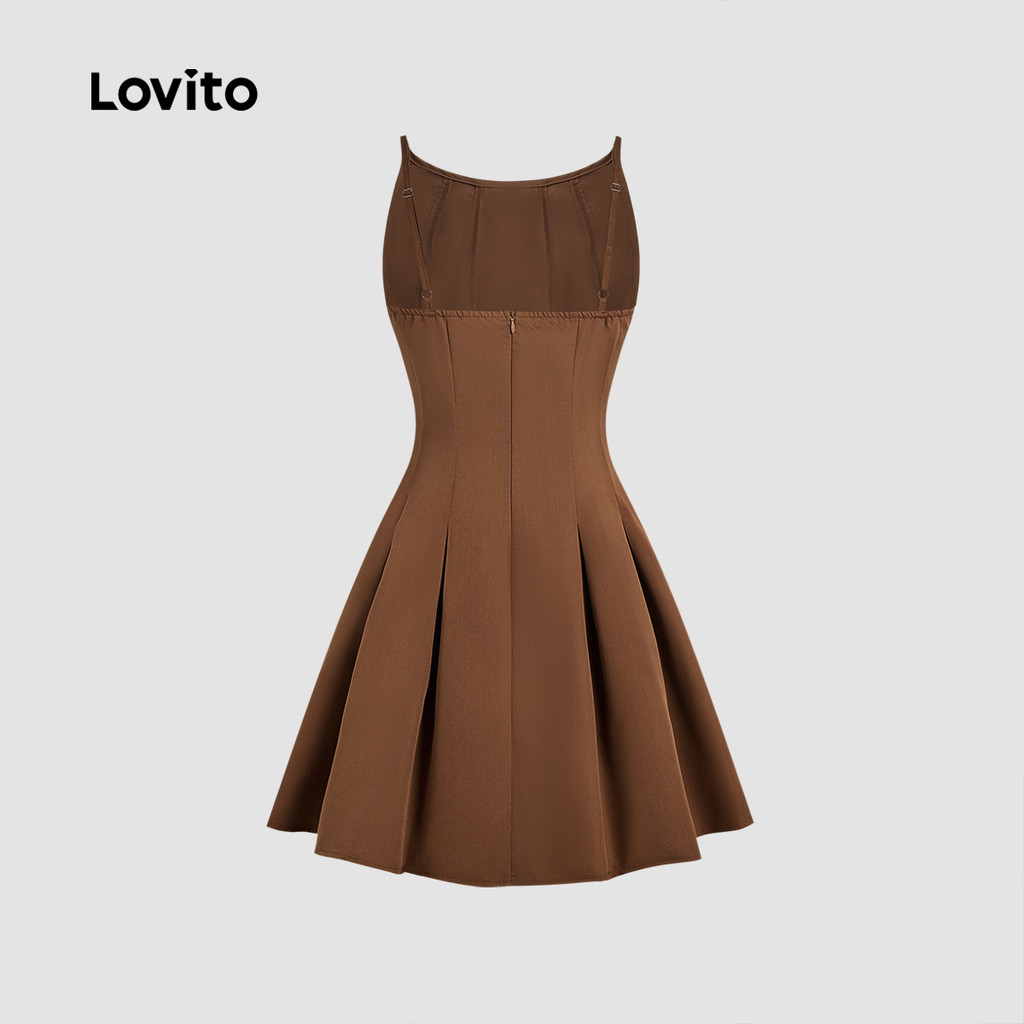 Lovito Vestido Casual Simples de Primavera/verão para Mulheres em Tom de marrom L158ED341