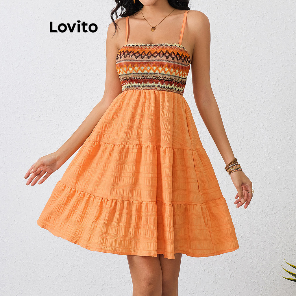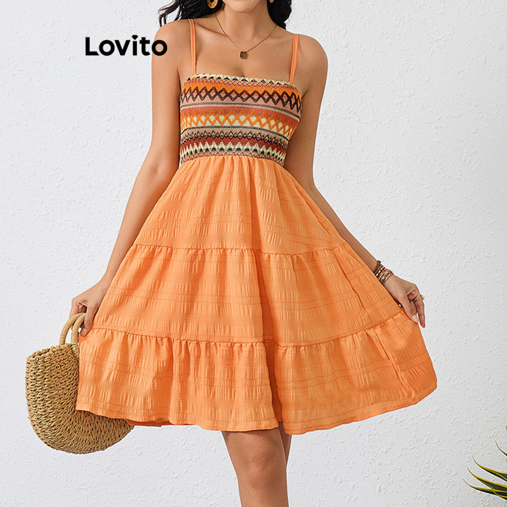 Lovito Refine Vestido Boho Jacquard Geométrico Feminino LBL17589\4