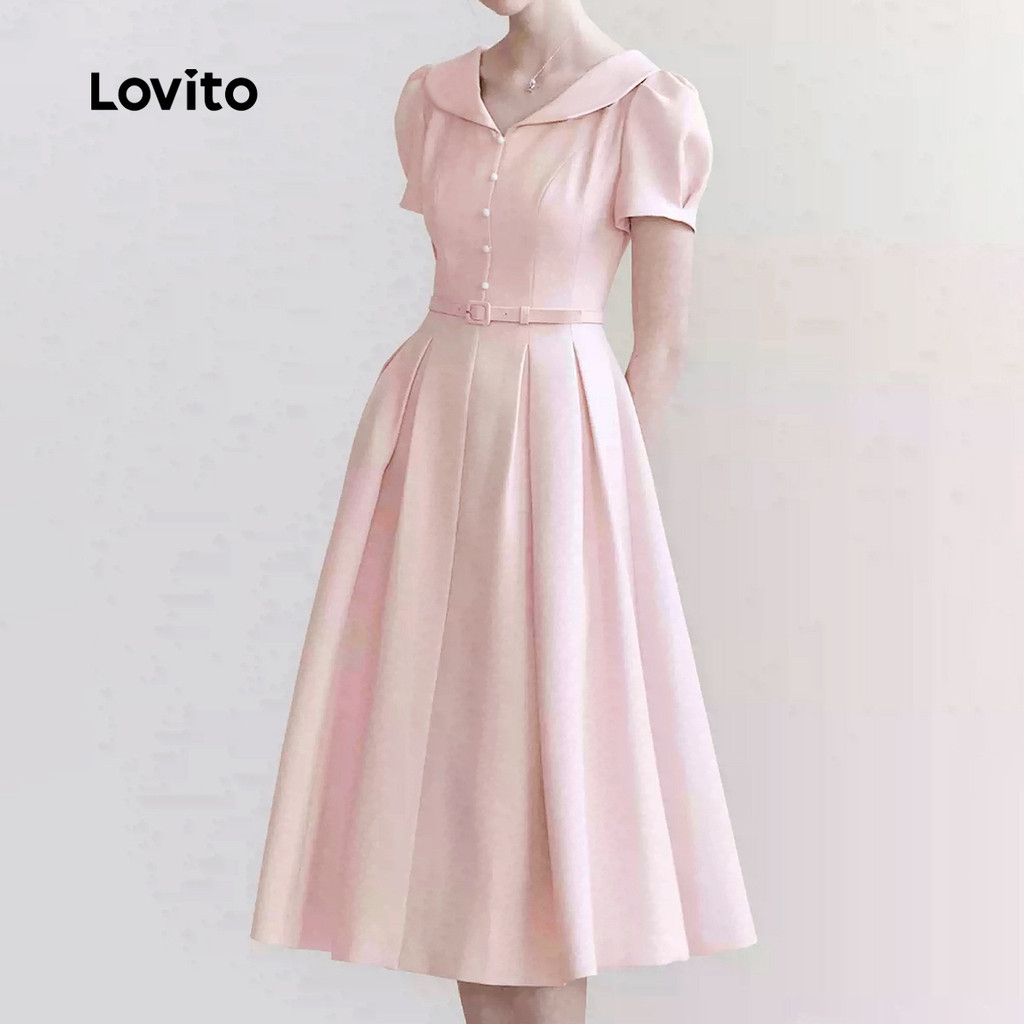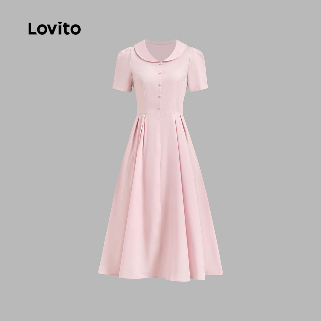 Lovito Vestido Elegante Com Botões Lisos Para Mulheres L131LD1086