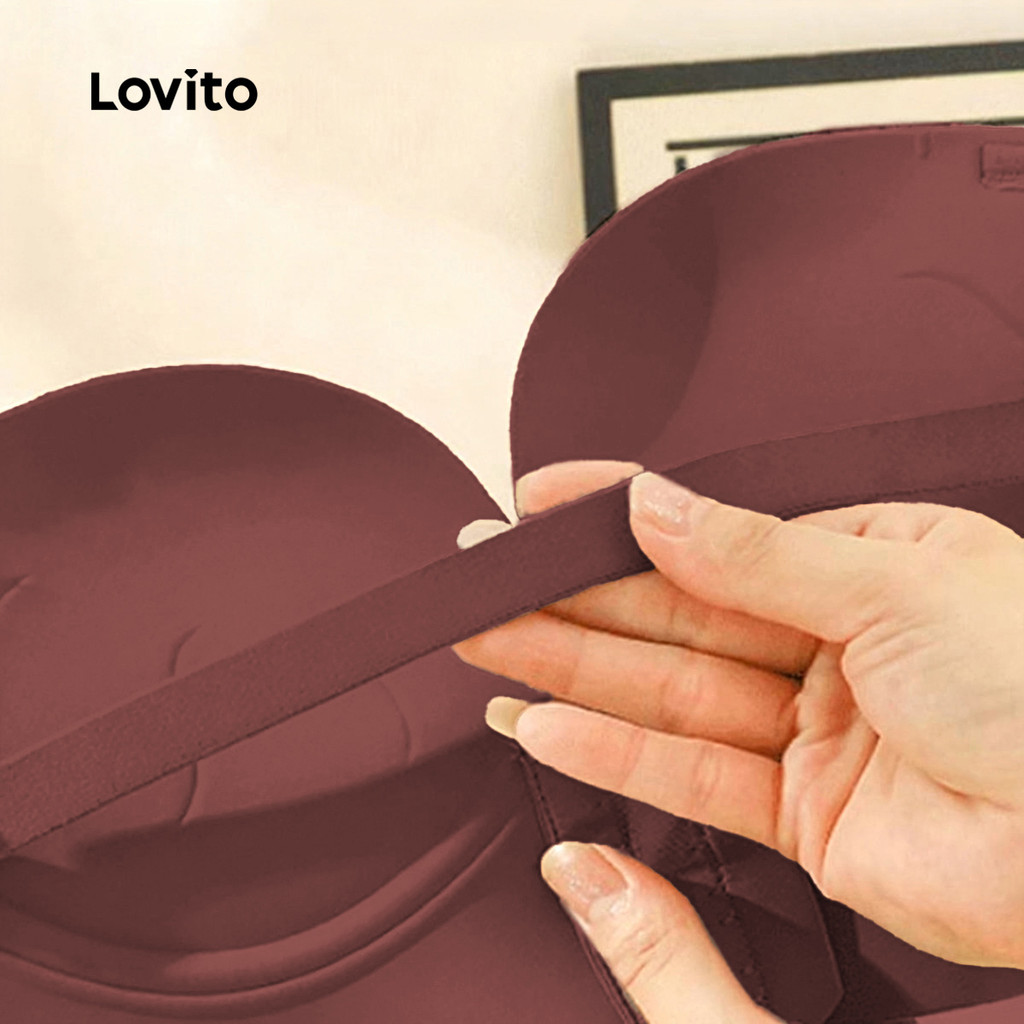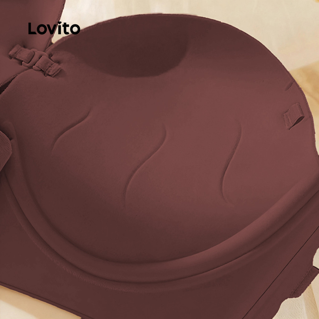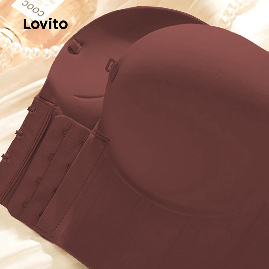 Lovito Sutiã Sexy de Malha Macia Sem Fio com Bojo Push-up Botão Frontal Sutiã Marrom para mulheres LNE117124