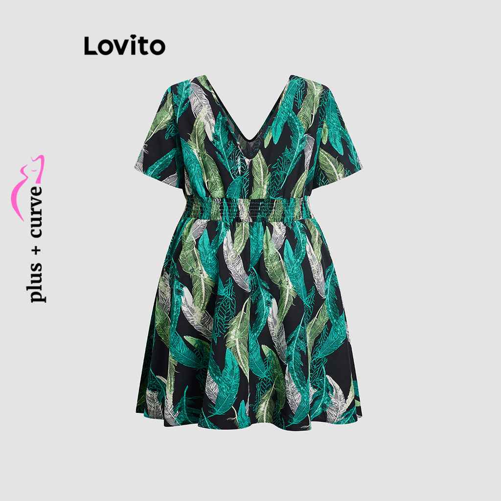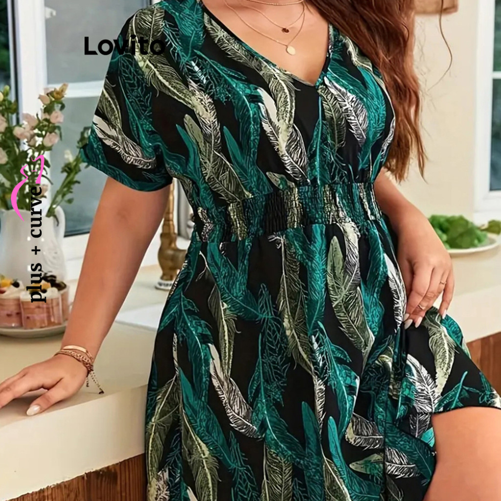 Lovito Vestido Plissado De Penas Boho Curva Plus Size Para Mulheres LBL20179\5