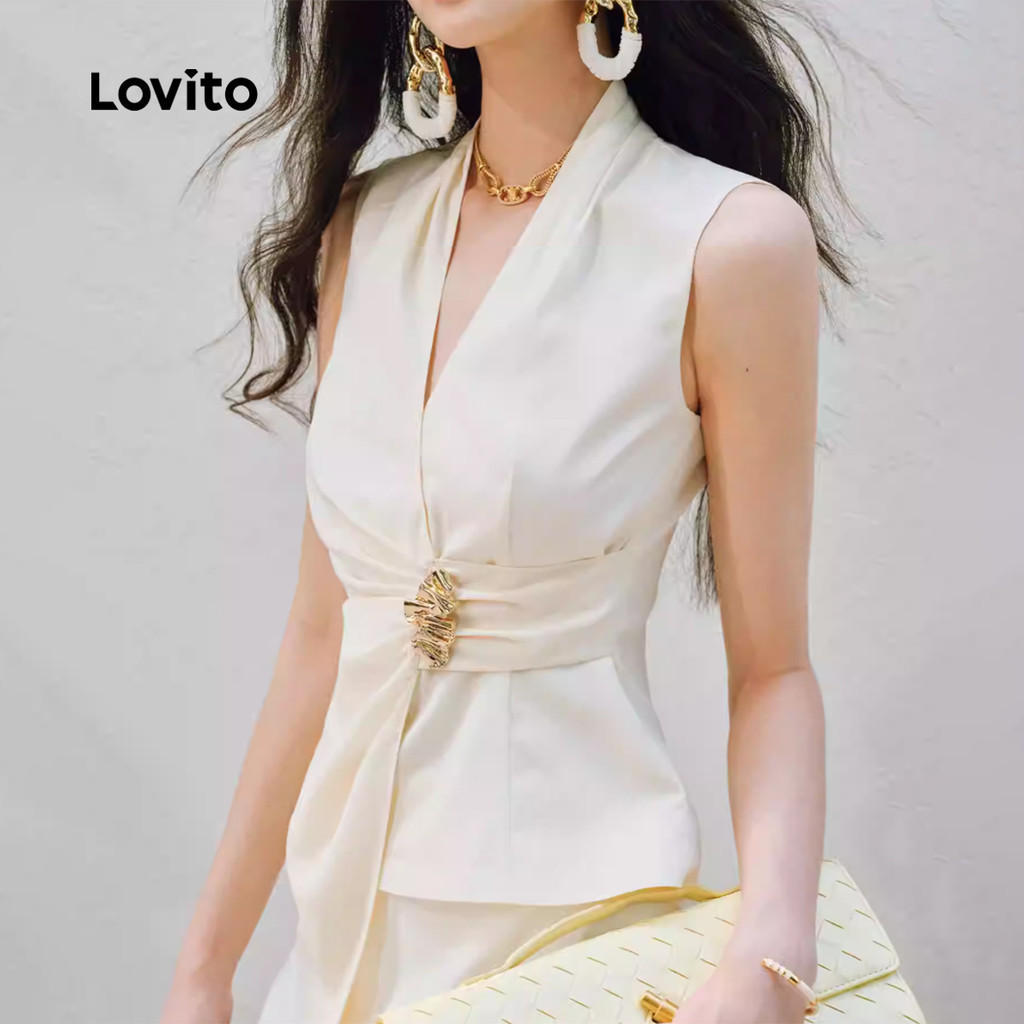 Lovito Cinturão de Metal Elegante para Blusa de Primavera/verão Branca para mulheres L142LD444