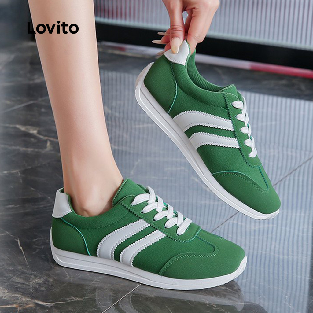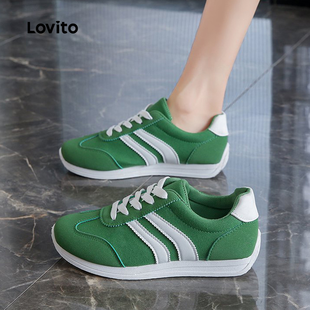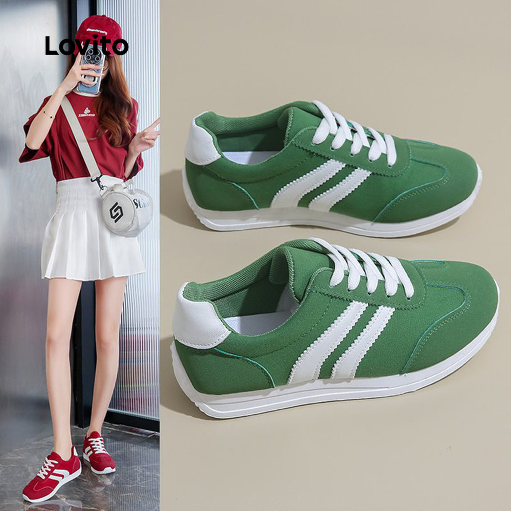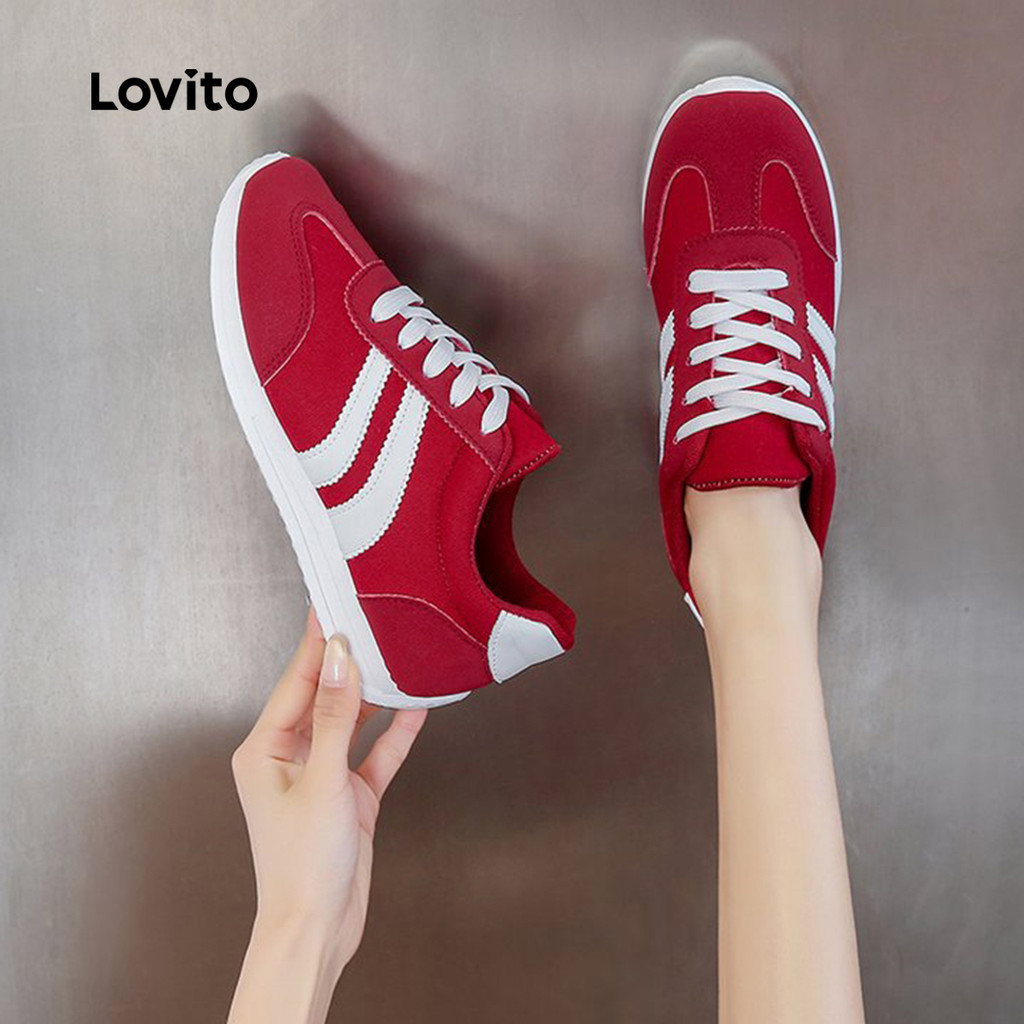 Lovito Esporte liso vermelho Forrest Gump sapatos leves correndo estudante movimento moda tênis para mulher LFA76329