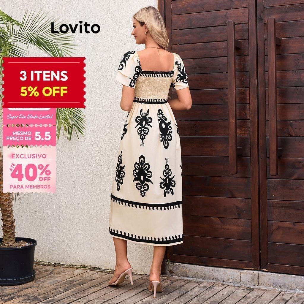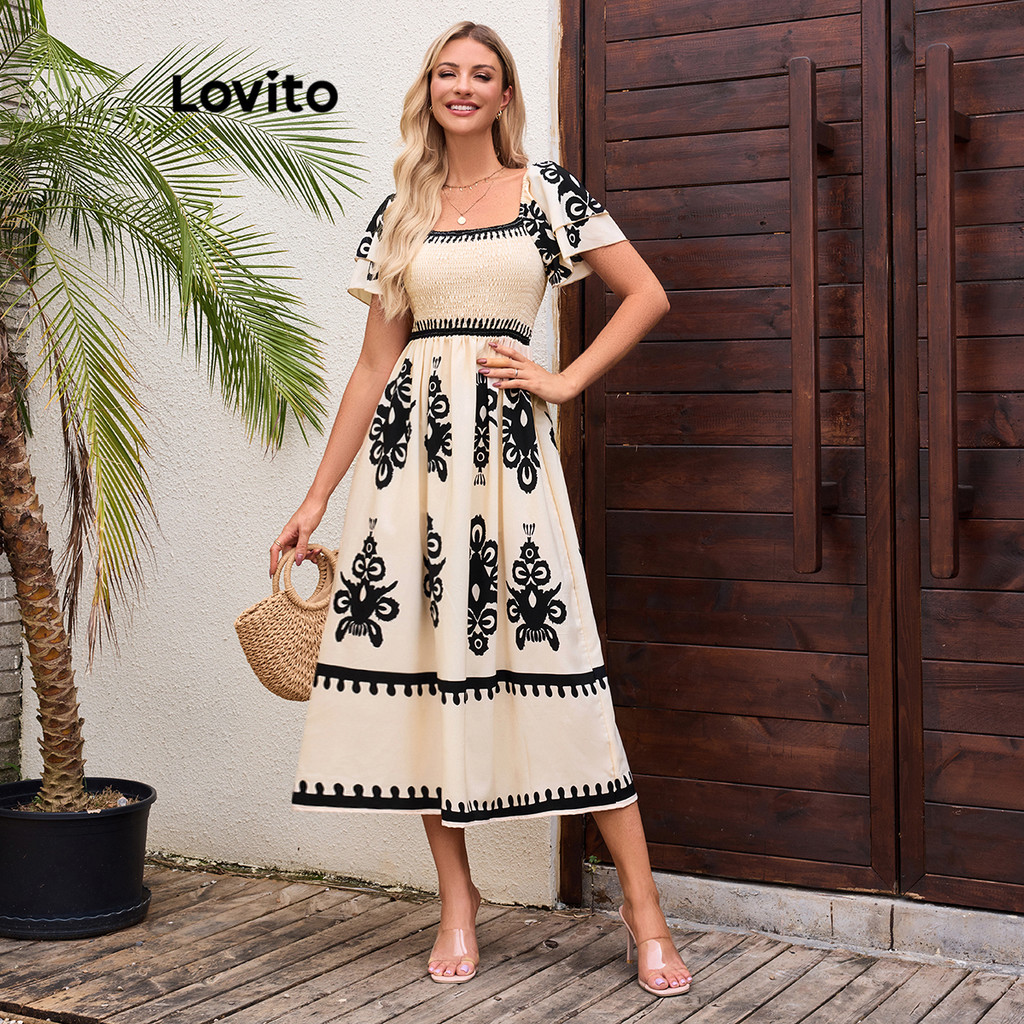 (KOL‘s pick) Lovito Vestido Romântico Paisley Vestido Com Babados Para Mulheres LBL16668