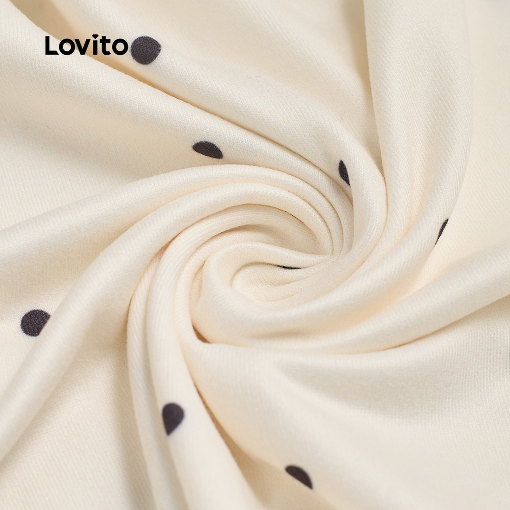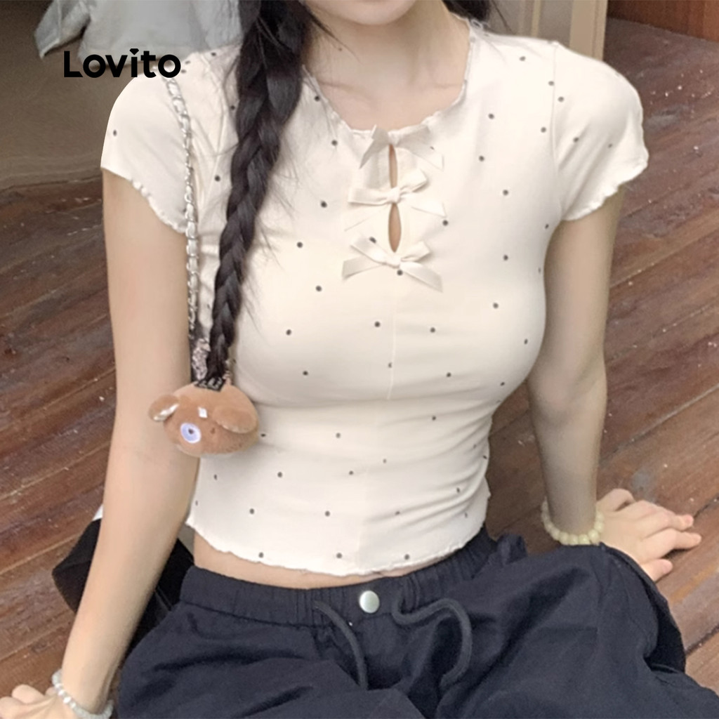 Lovito Camiseta Casual De Bolinhas Com Estampa De Laço E Babados Verão E Primavera Damasco WomenL136AD309