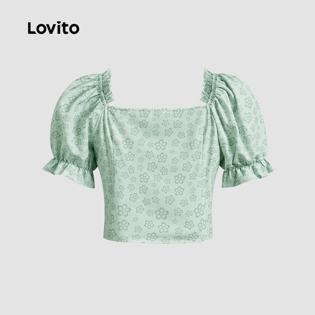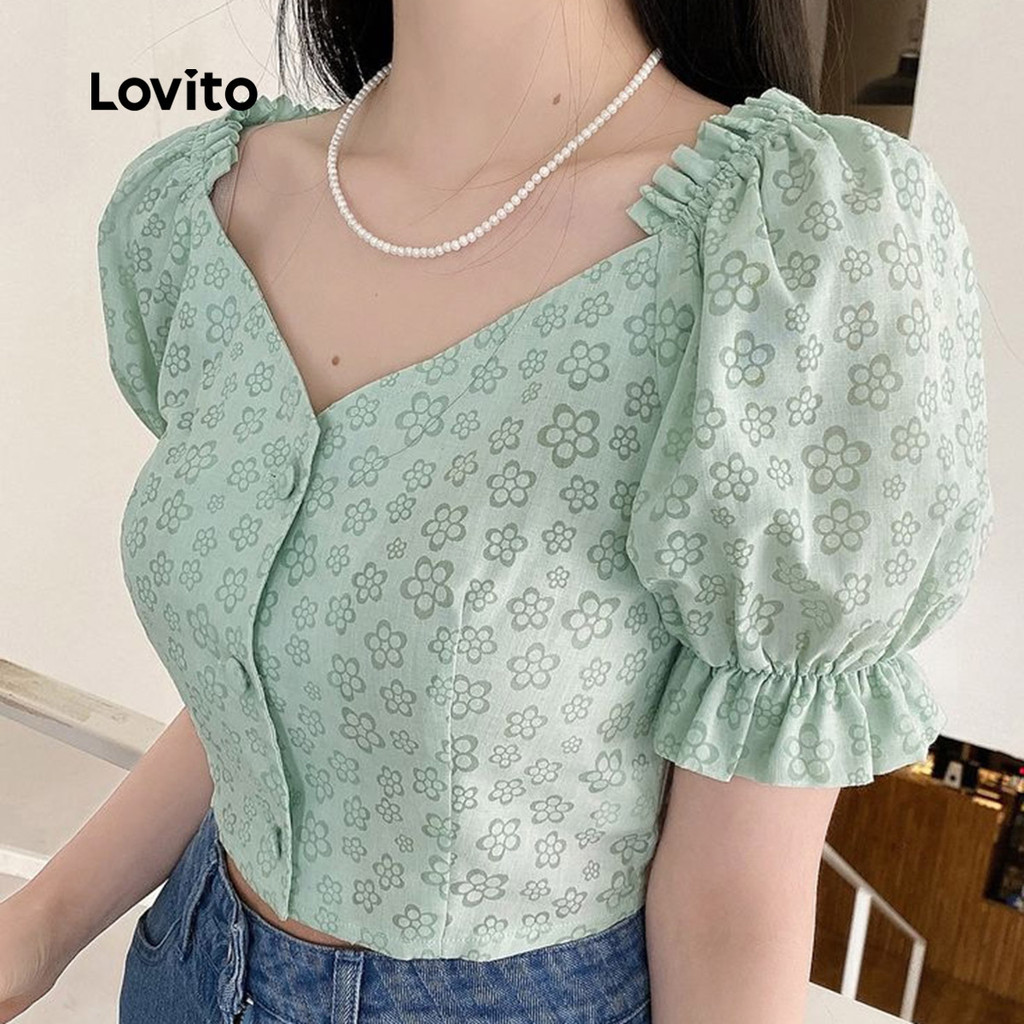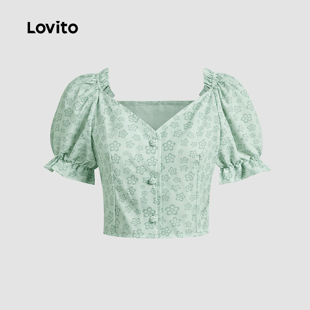 Lovito Blusa Elegante com Botões e Maxi Babados Macia e Confortável Blusa Verde para primavera/verão L137ED685