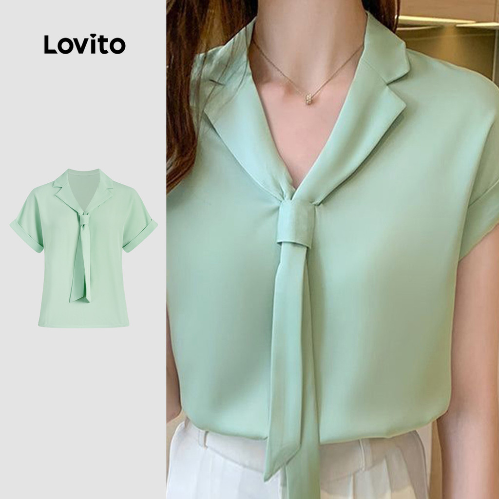 (Trendy) Lovito Blusa elegante com gola lisa e gravata para mulheres L131ED429