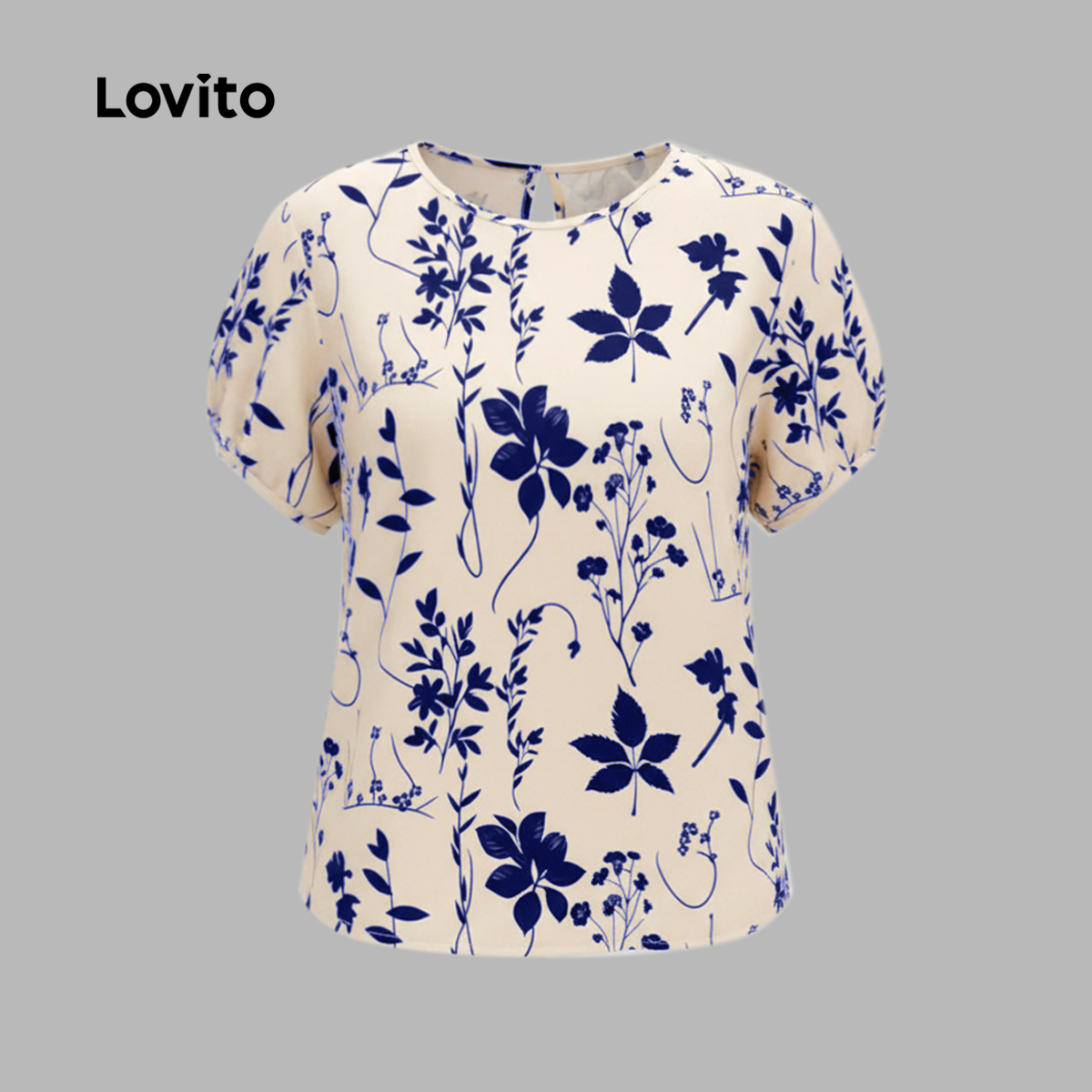 Lovito Blusa Elegante com Flores Franzida Primavera/verão para mulheres L143ED387
