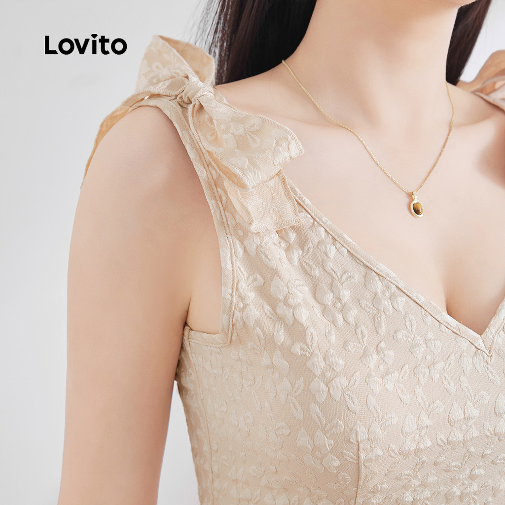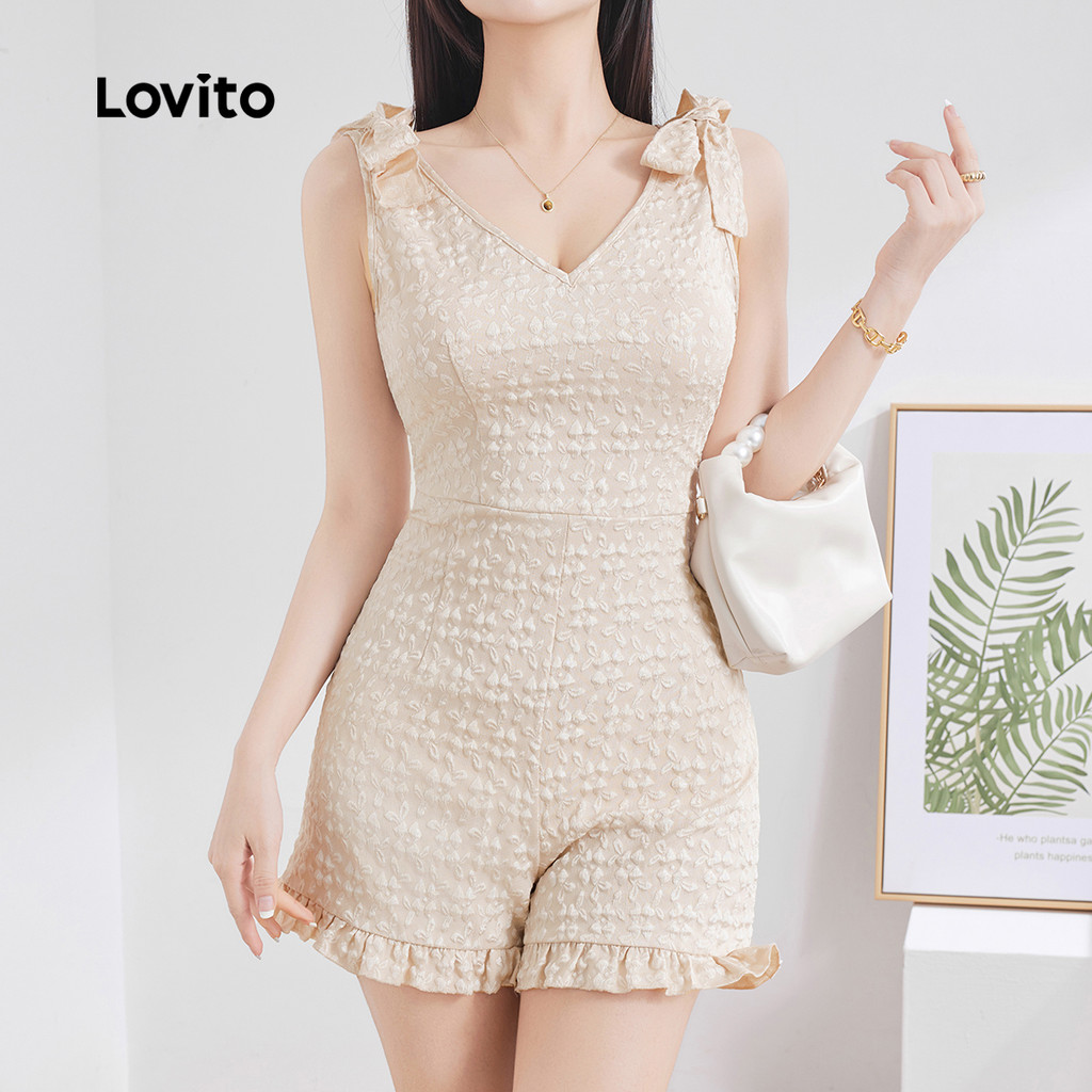 Lovito Macacão Feminino Casual Simples com Babados Frontais para Primavera/Verão Damasco L132ED639