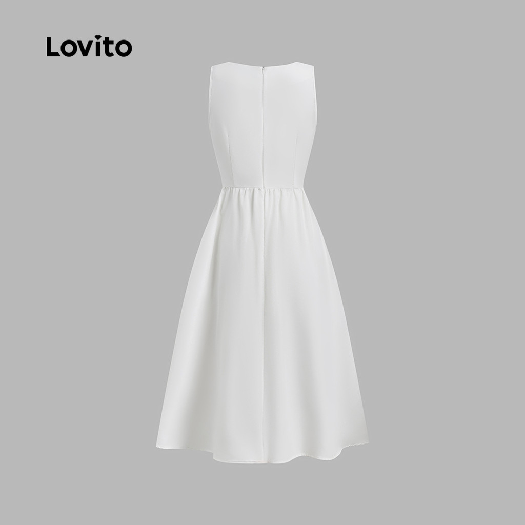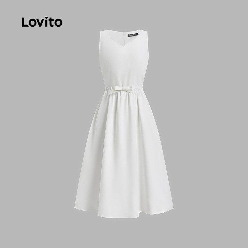 Lovito Vestido Elegante com Laço Na Frente Simples para Primavera/verão Off-white para mulheres L155ED1143