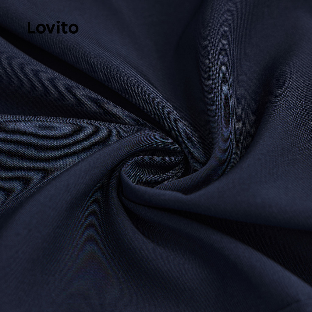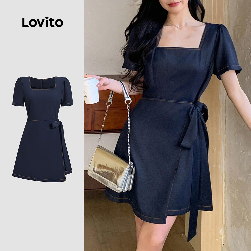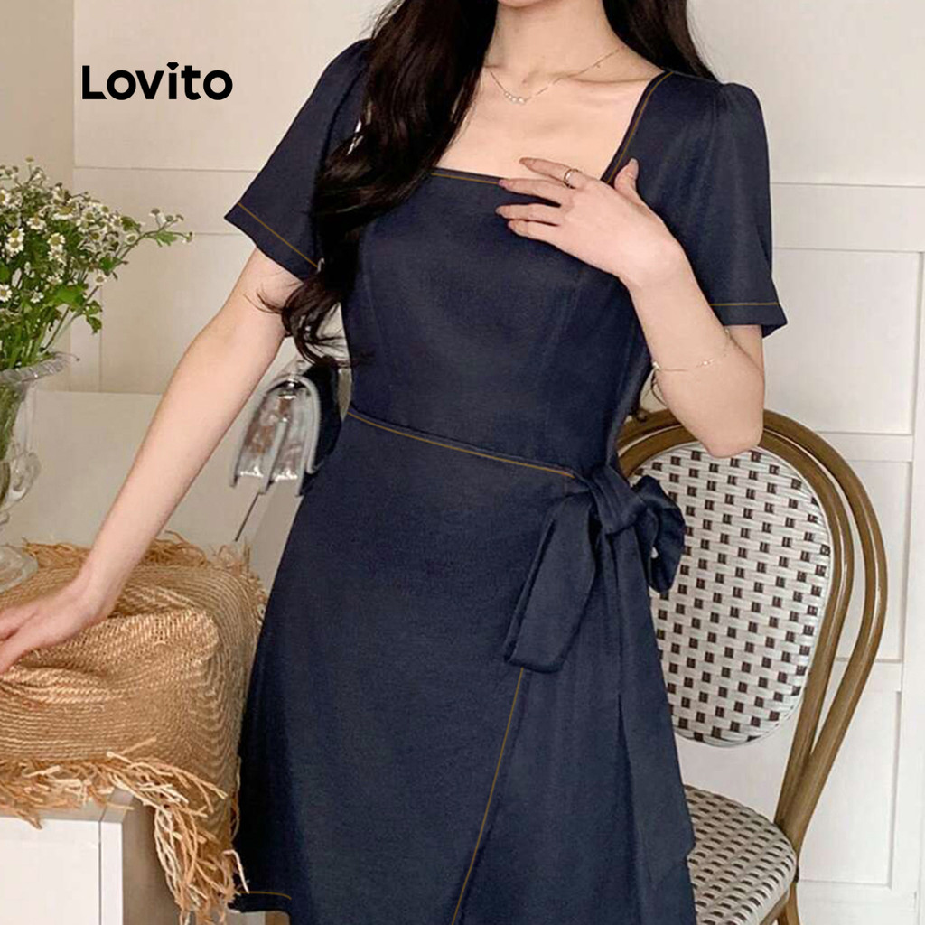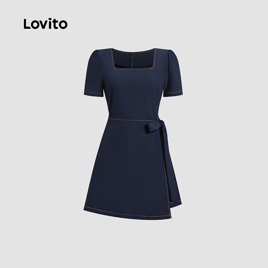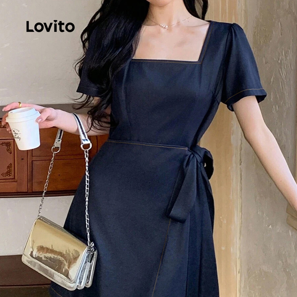 Lovito Refine Vestido Feminino Marinho Elegante Liso Com Cadarço Para Verão Primavera L134ED404