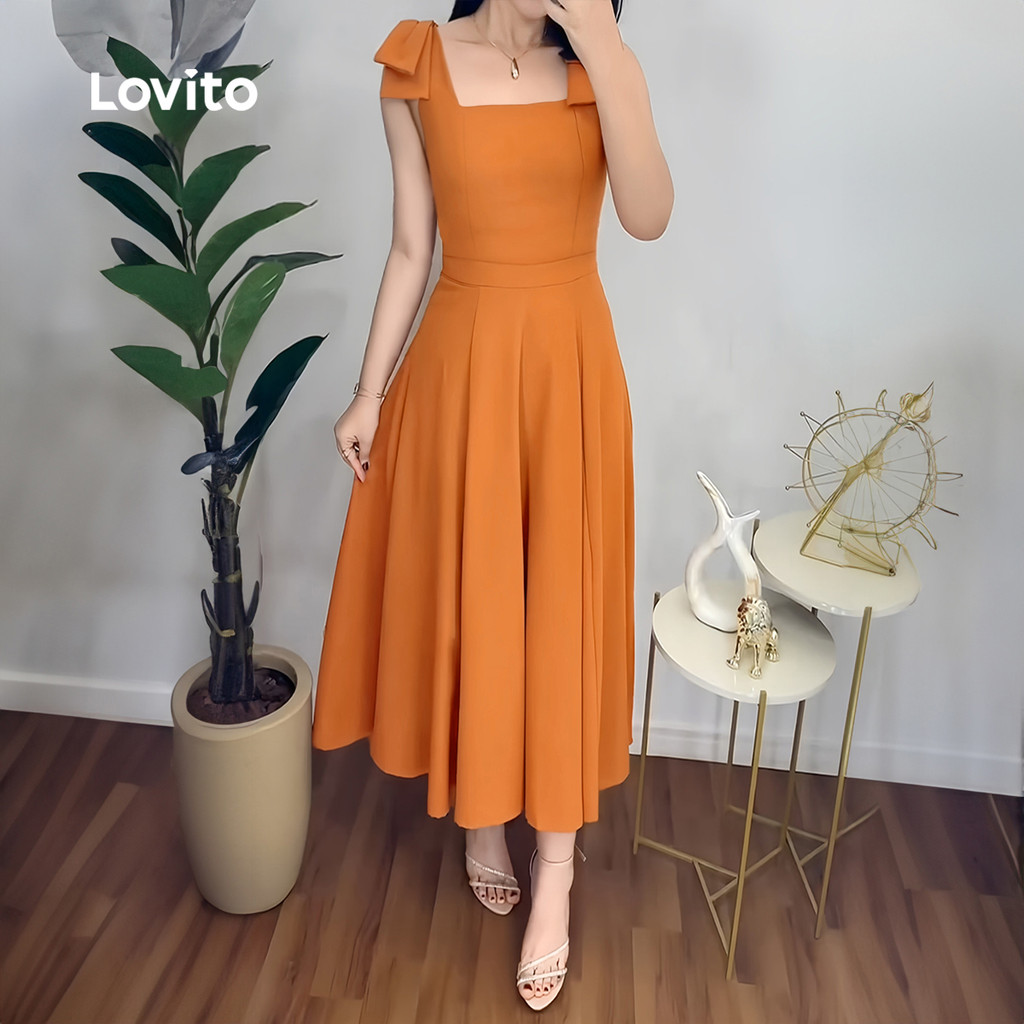 Lovito Vestido Boho com Laço Nas Costas Macio e Confortável Vestido Laranja para primavera/verão L137ED690