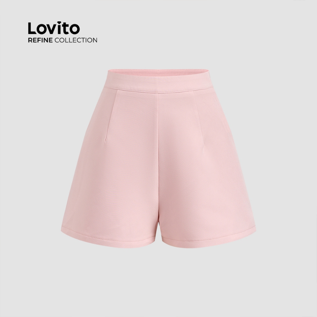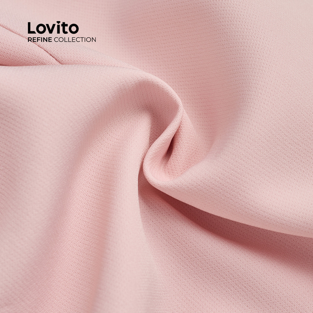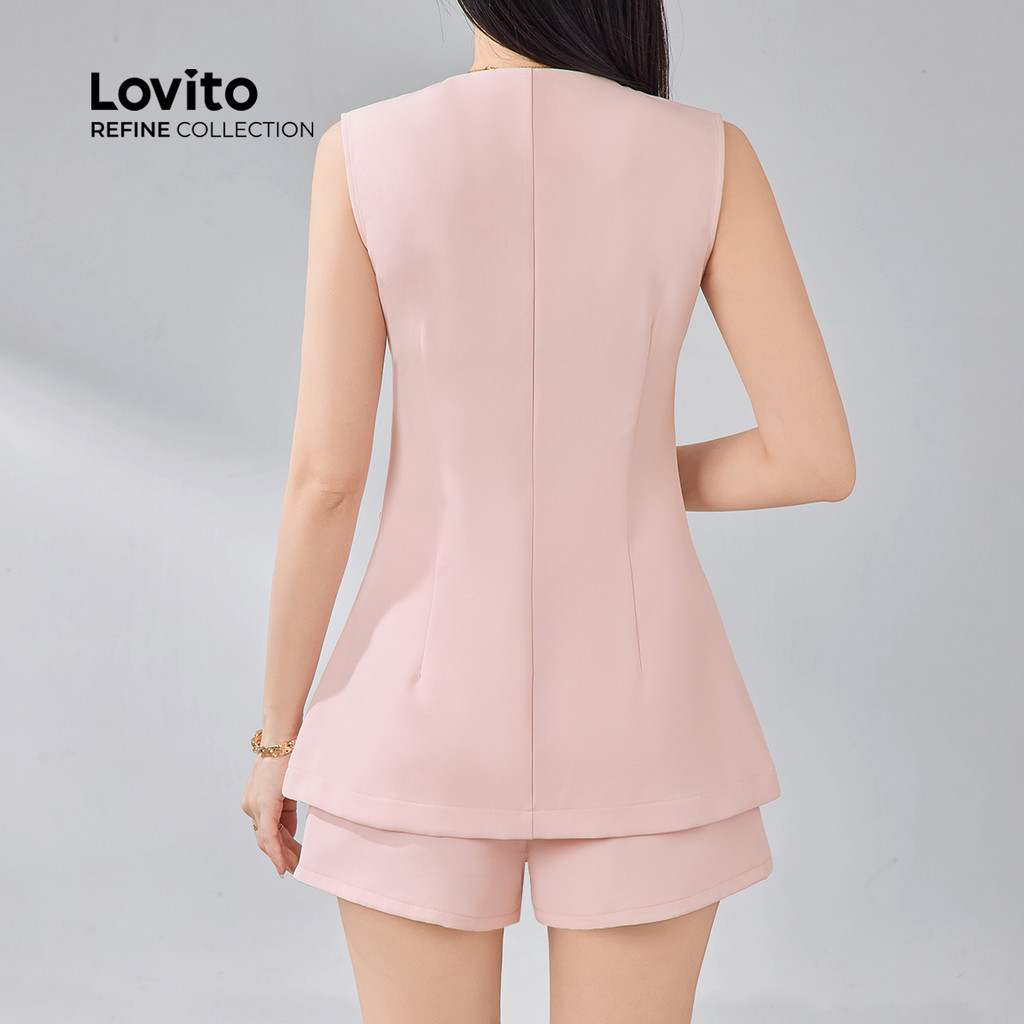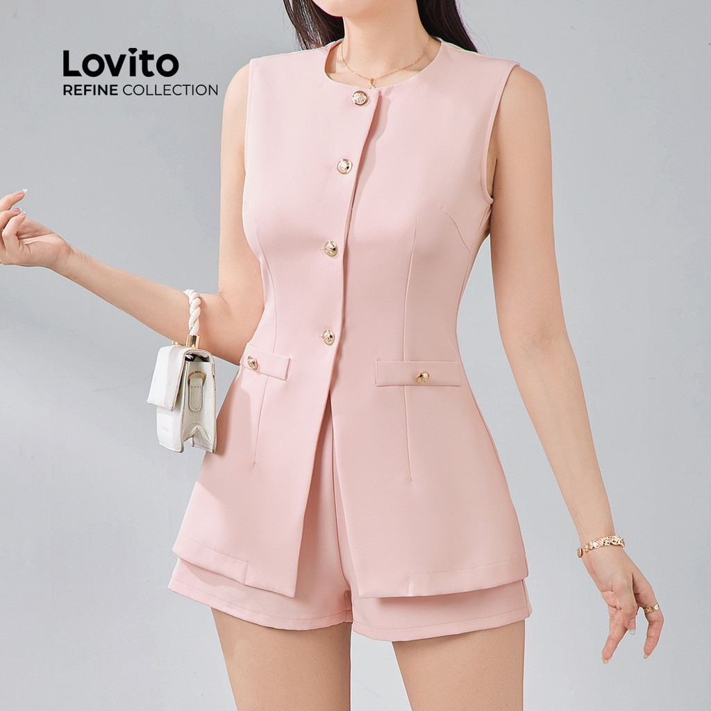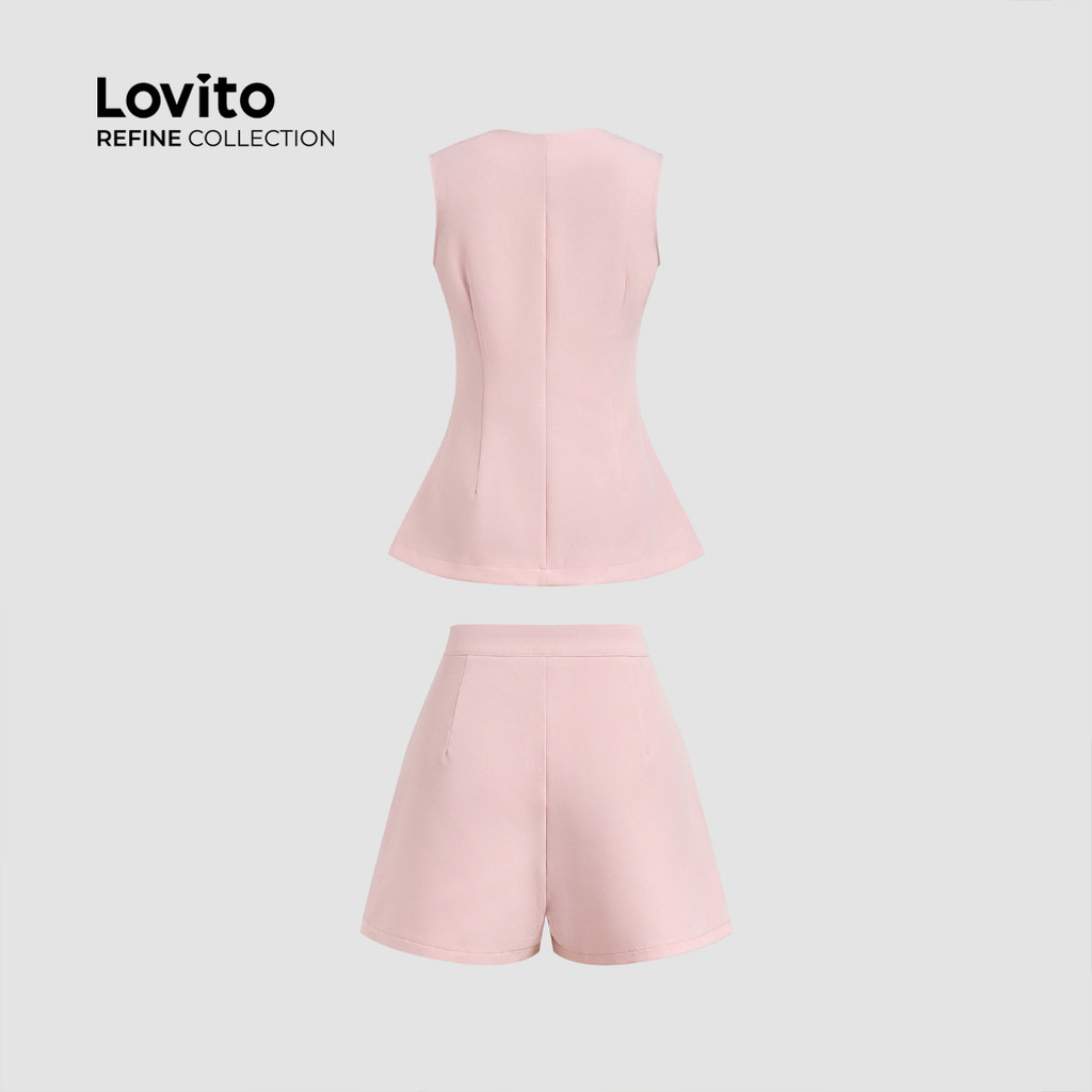 (NEW) (Lovito Refine) Conjuntos com Botão Bolso Falso Primavera/verão Blusa Rosa e Shorts LR13E213