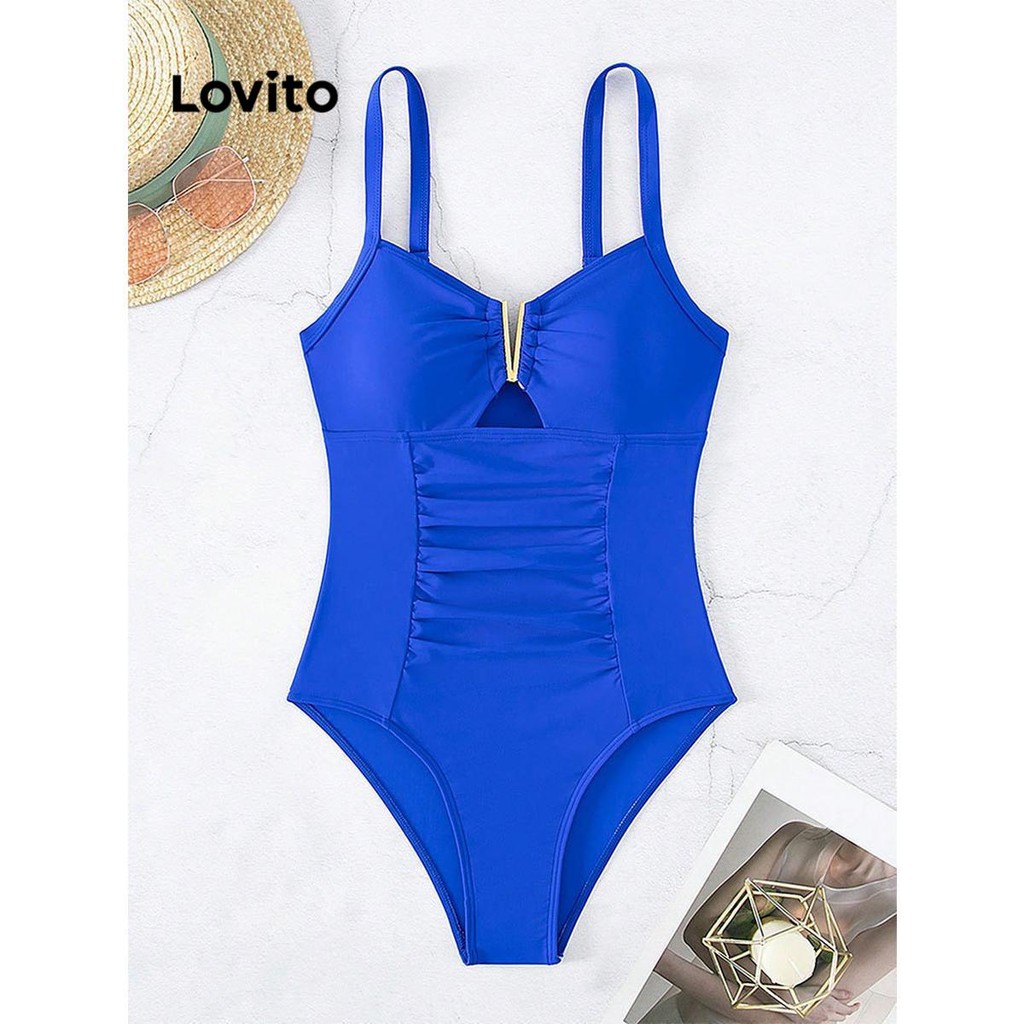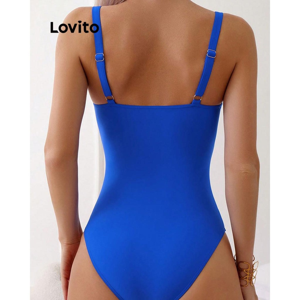 Lovito Maiô Feminino Sexy de Uma Peça com Corte Metálico Liso para Mulheres LNL42135