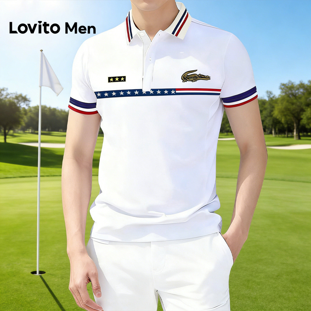 Lovito Men Camisa Polo Casual Botão Primavera/verão Camisa Polo Branca para Homens LNE127017