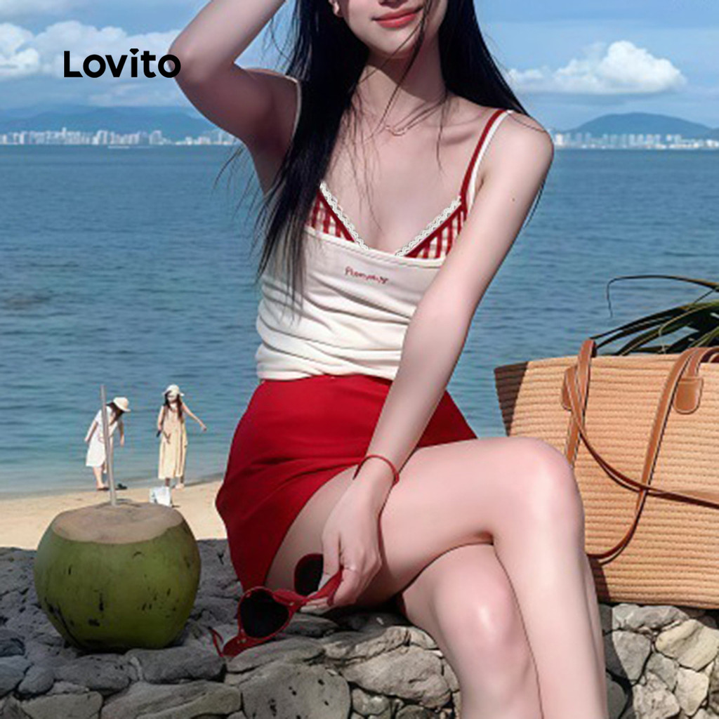 Lovito Conjuntos de Biquíni Sexy 4 Conjuntos de Biquíni Vermelho para Mulheres Primavera/Verão LNE126X016