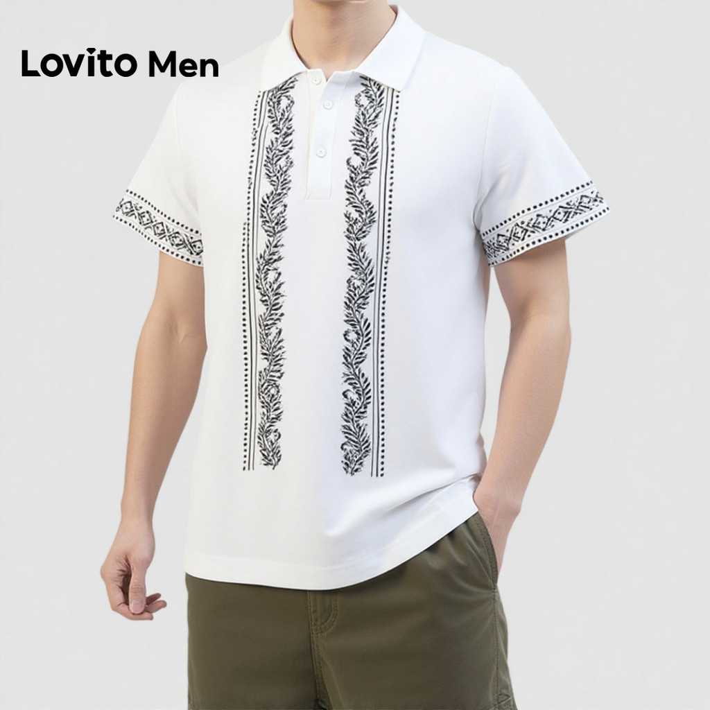 Lovito Men Camisa Polo Boho Primavera/verão Camisa Polo Masculina de damasco LNE131068