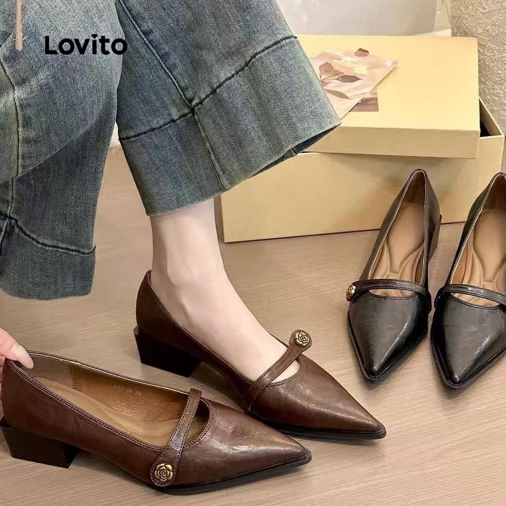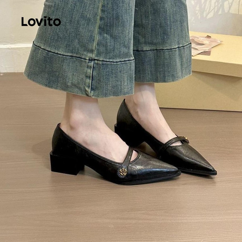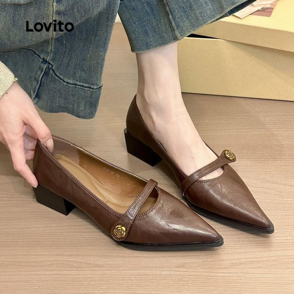 (Trendy) Lovito Mocassins Leves Florais Lisos Salto Baixo Para Mulheres LFA75020