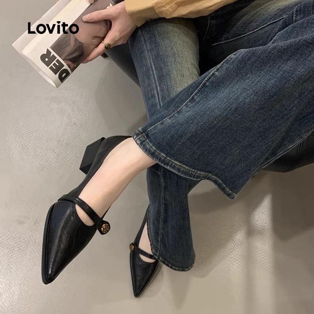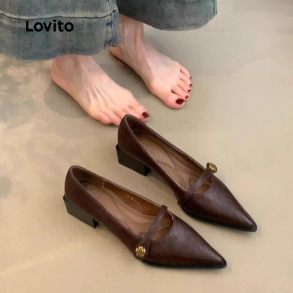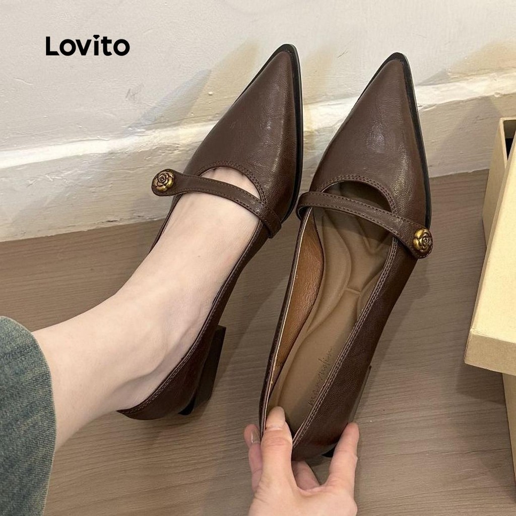 (Trendy) Lovito Mocassins Leves Florais Lisos Salto Baixo Para Mulheres LFA75020