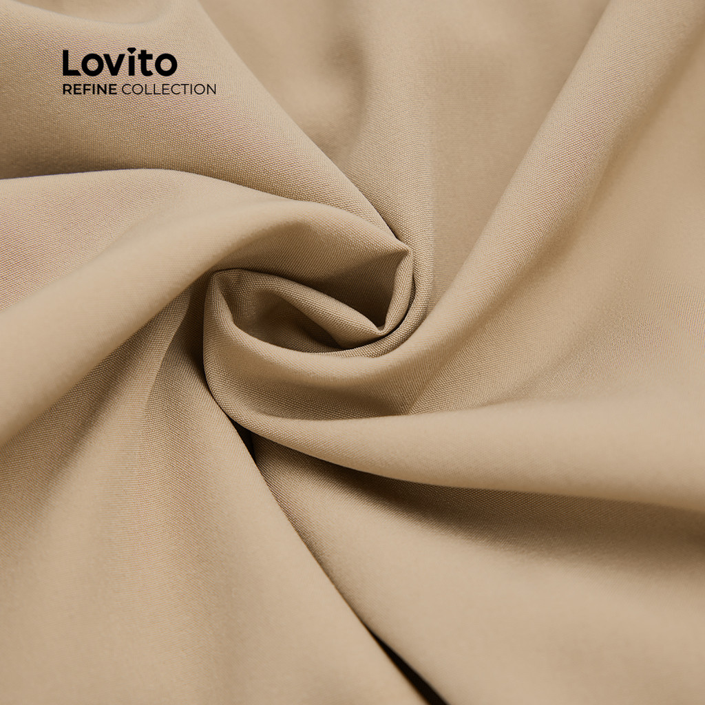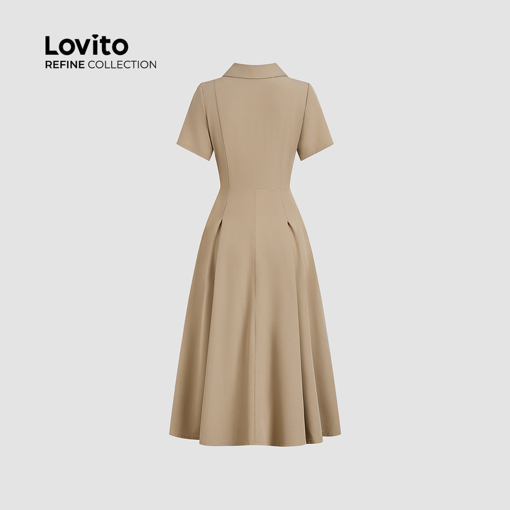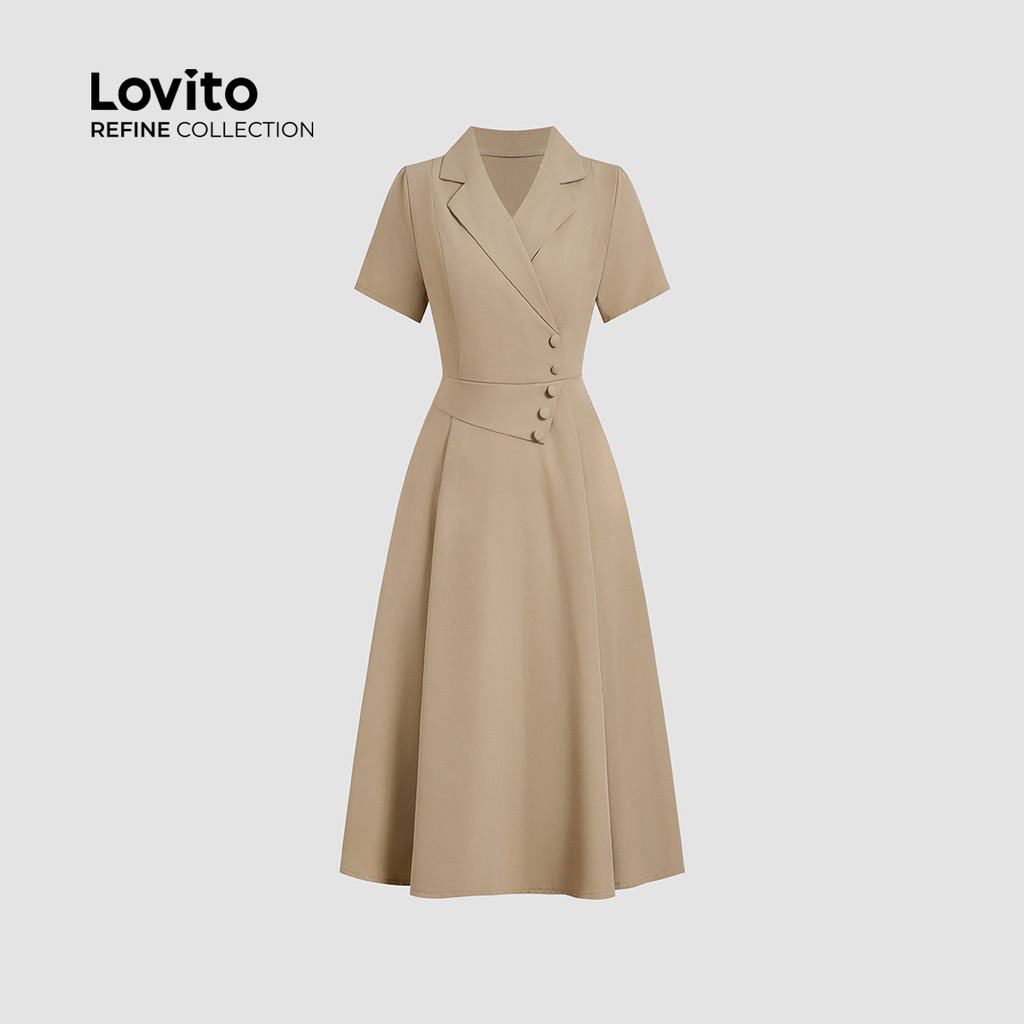 (Lovito Refine) Vestido Elegante com Botões Assimétricos de Primavera/verão em Caqui para Mulher LR13E026