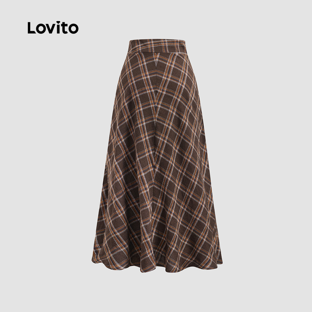 Lovito Saia feminina com design sofisticado em xadrez para mulheres LBL22556