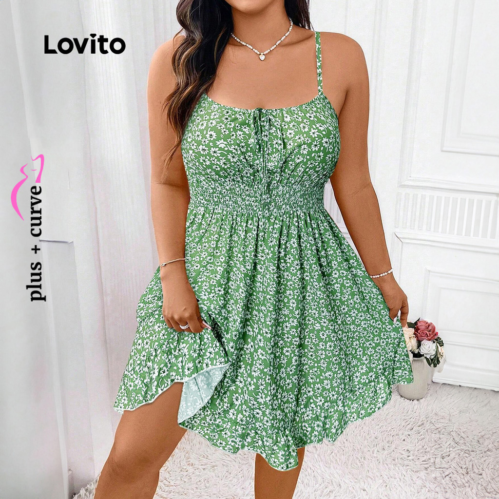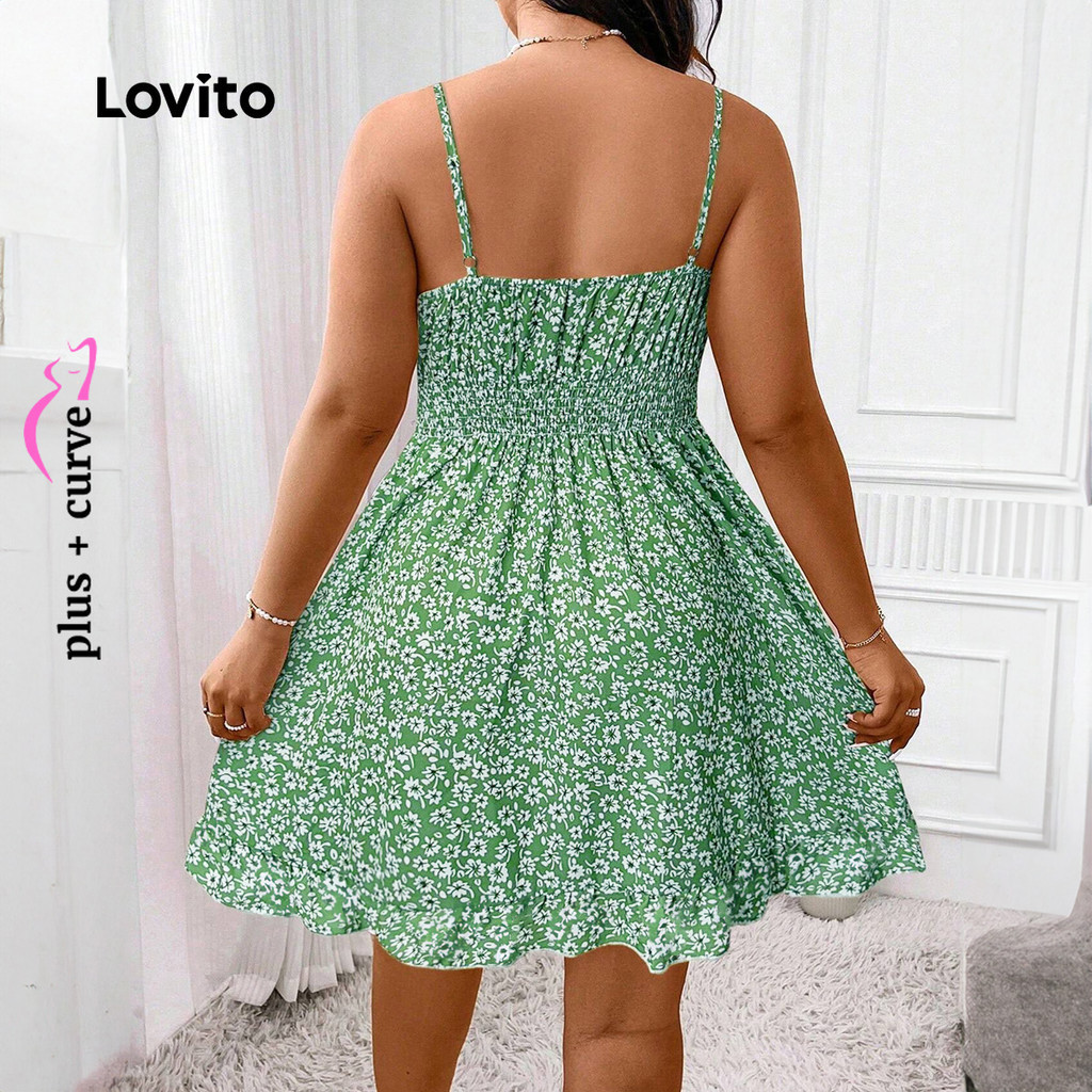 Lovito Vestido Boho Curve Plus Size Com Babados Florais E Vestido De Verão/primavera Para Mulheres LBL24578