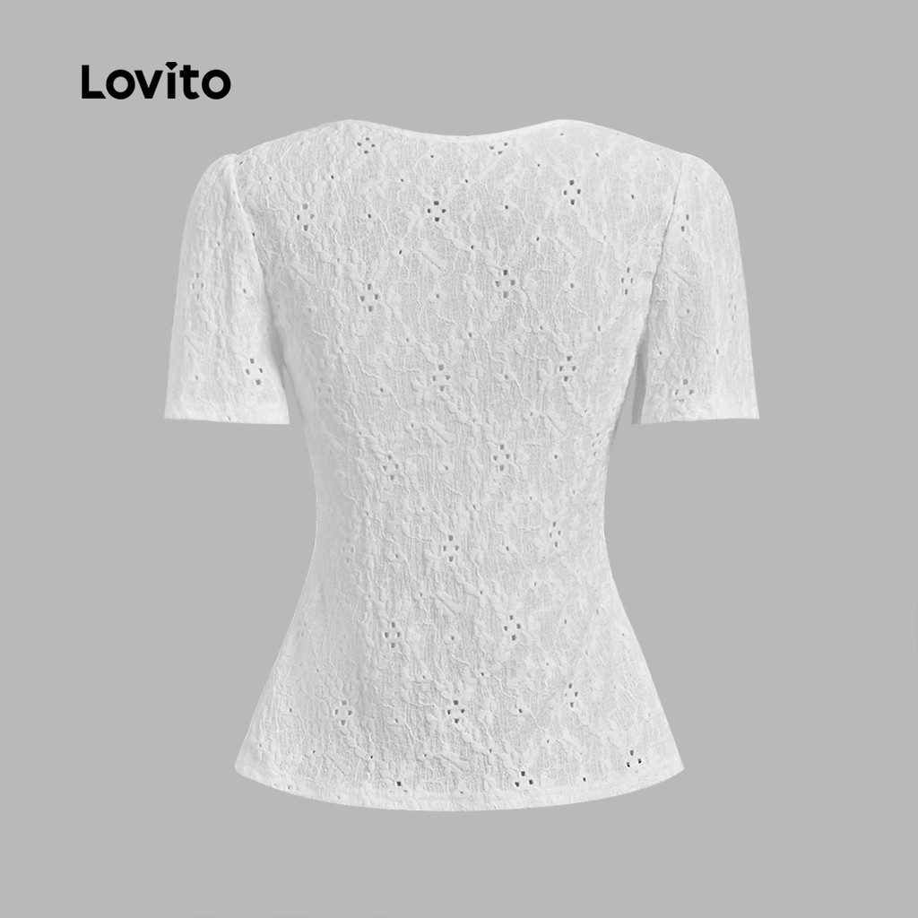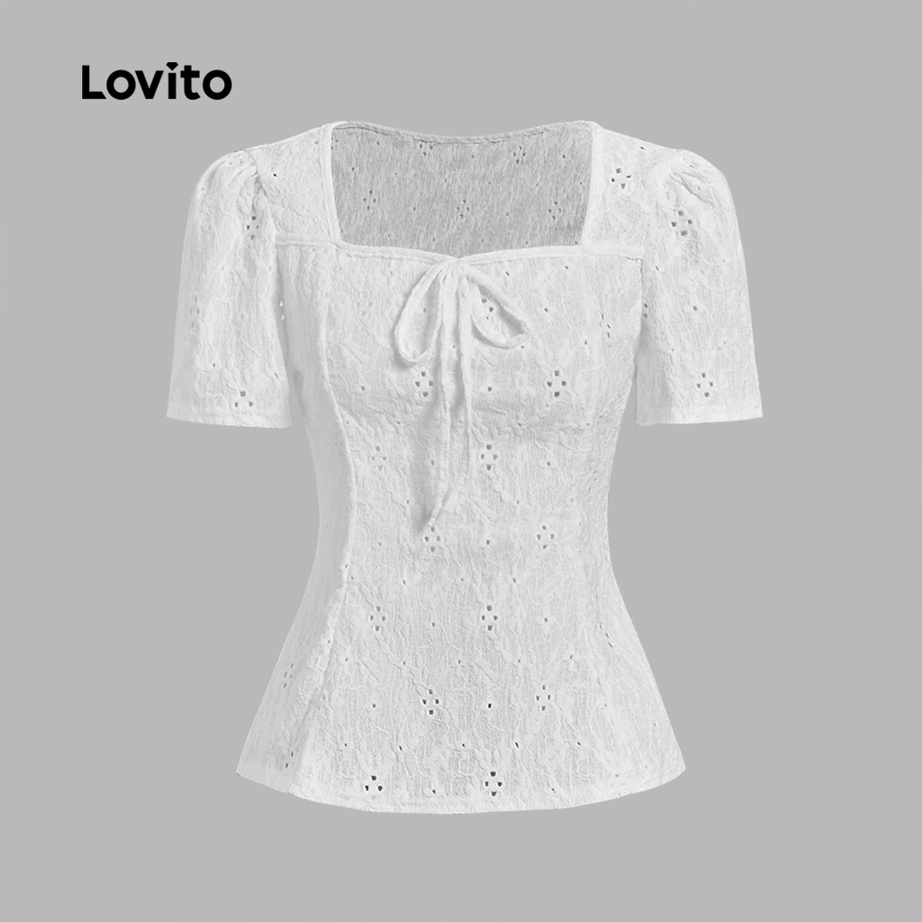 Lovito Camiseta Elegante Levemente Transparente Amarração Frontal Primavera/verão Off-white Camiseta Feminina L138ED075