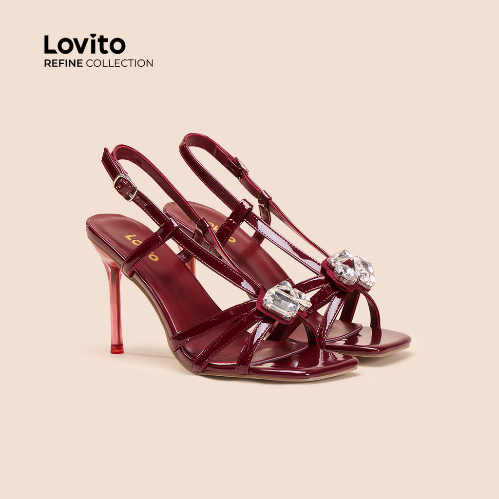 (Lovito Refine) Saltos Sexy com Strass e Fivela Primavera/verão Vermelhos para Mulheres LR14E404