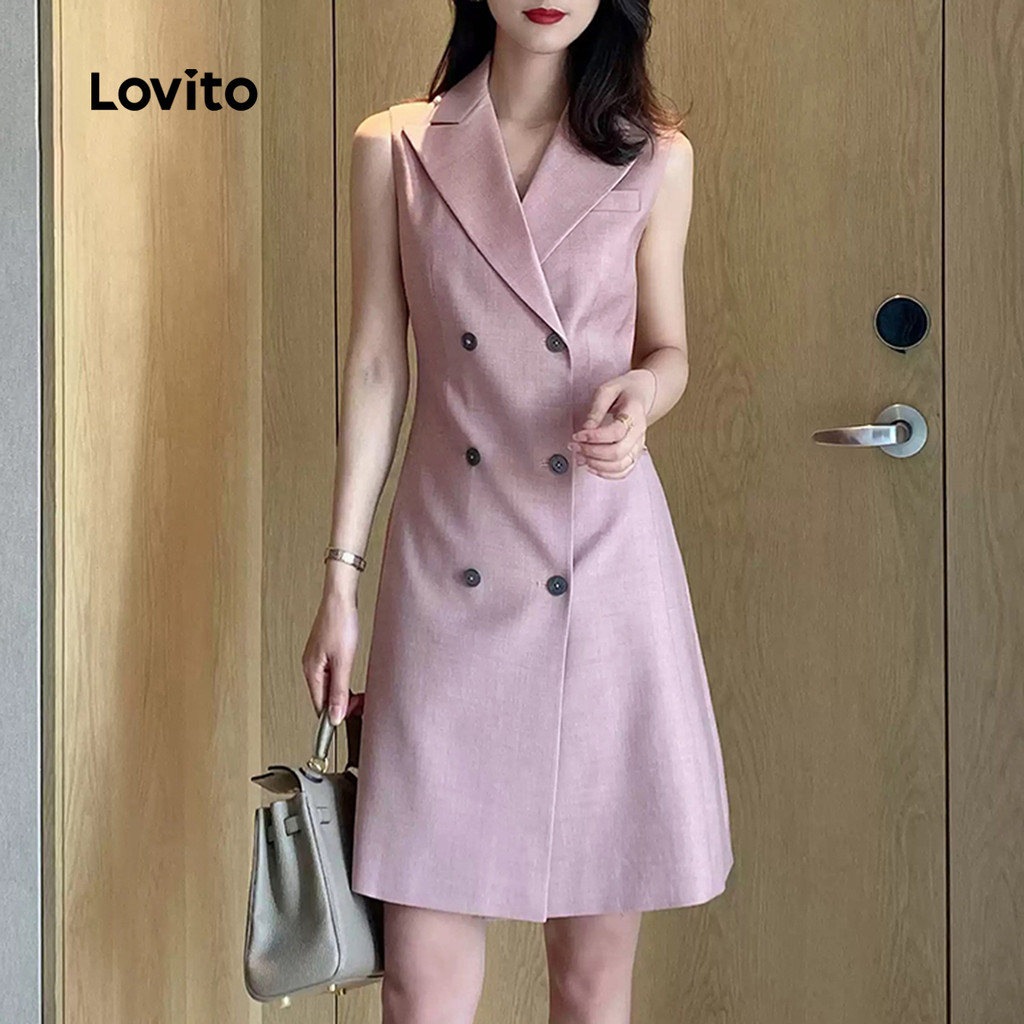 Lovito Vestido Casual Com Botões Clássico E Versátil Rosa Para Mulheres Primavera/verão L138AD958