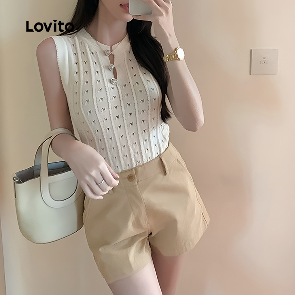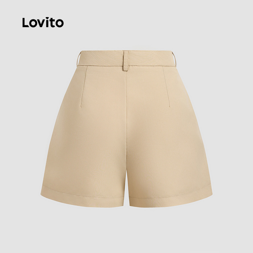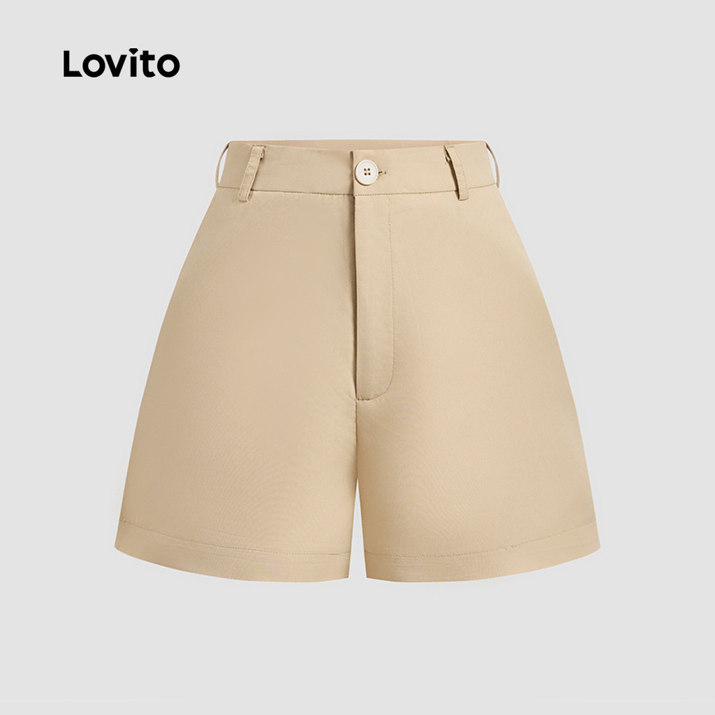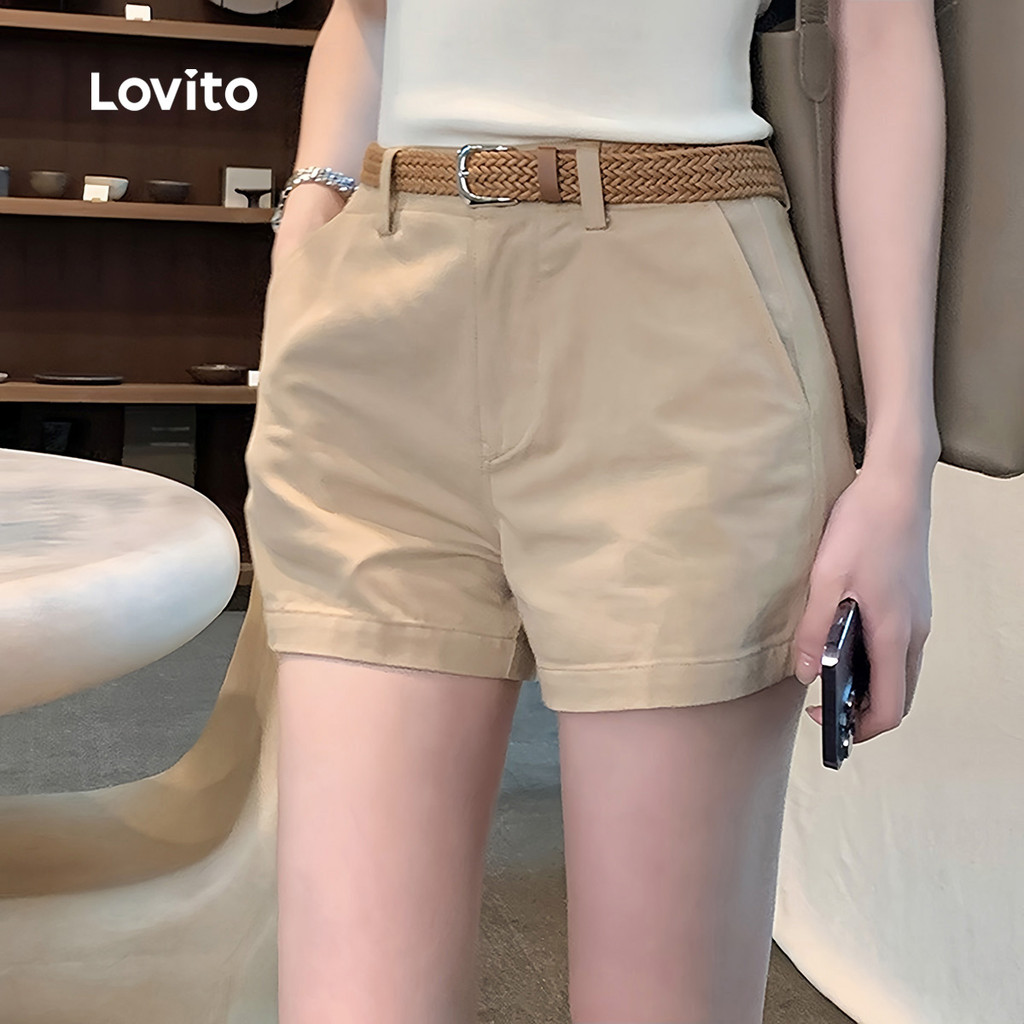 (New) Lovito Shorts Casuais com Bolso Primavera/verão Caqui para Mulheres L143ED338