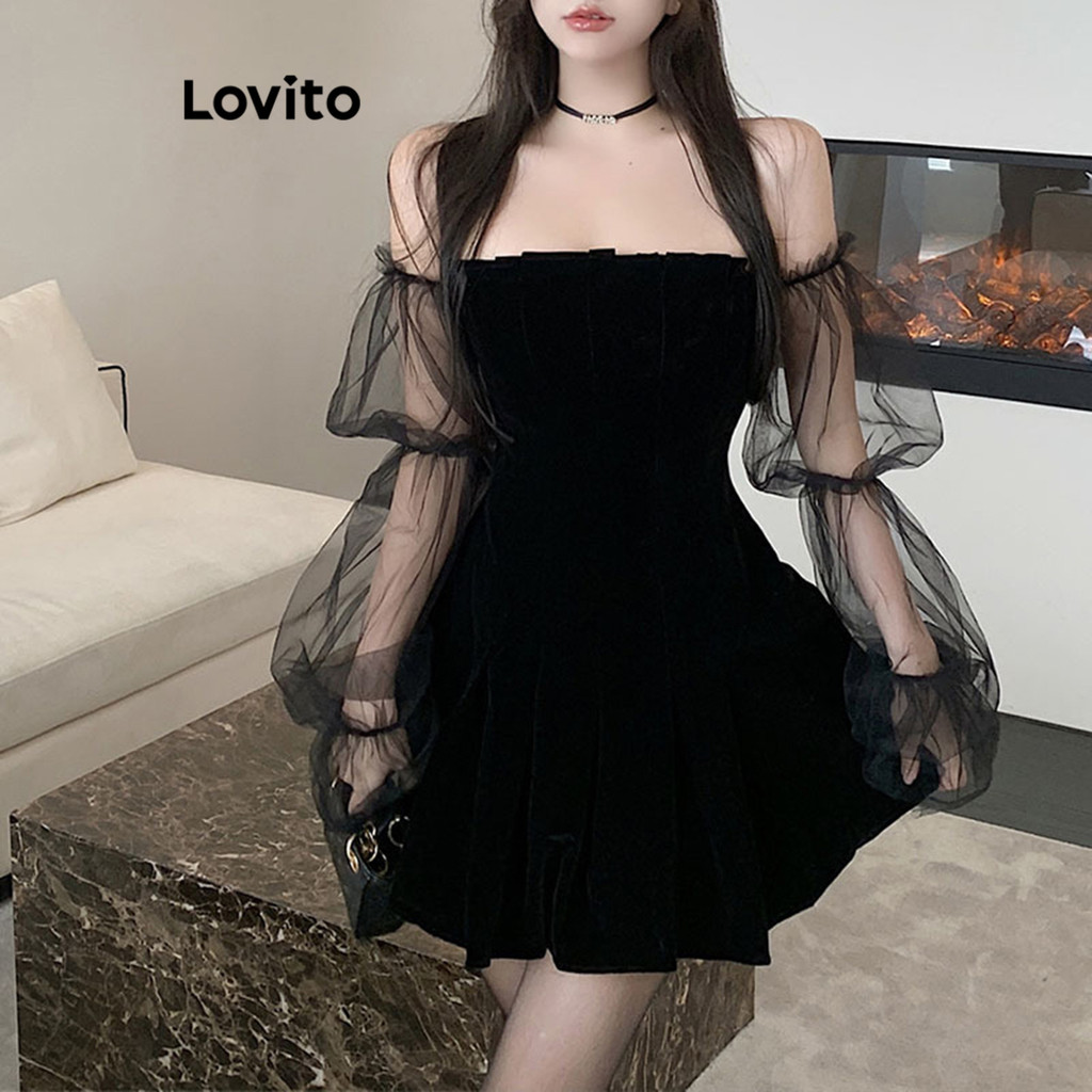 Lovito Vestido Casual Liso Drapeado de Malha com Acabamento em Alface para Mulheres L102AD480