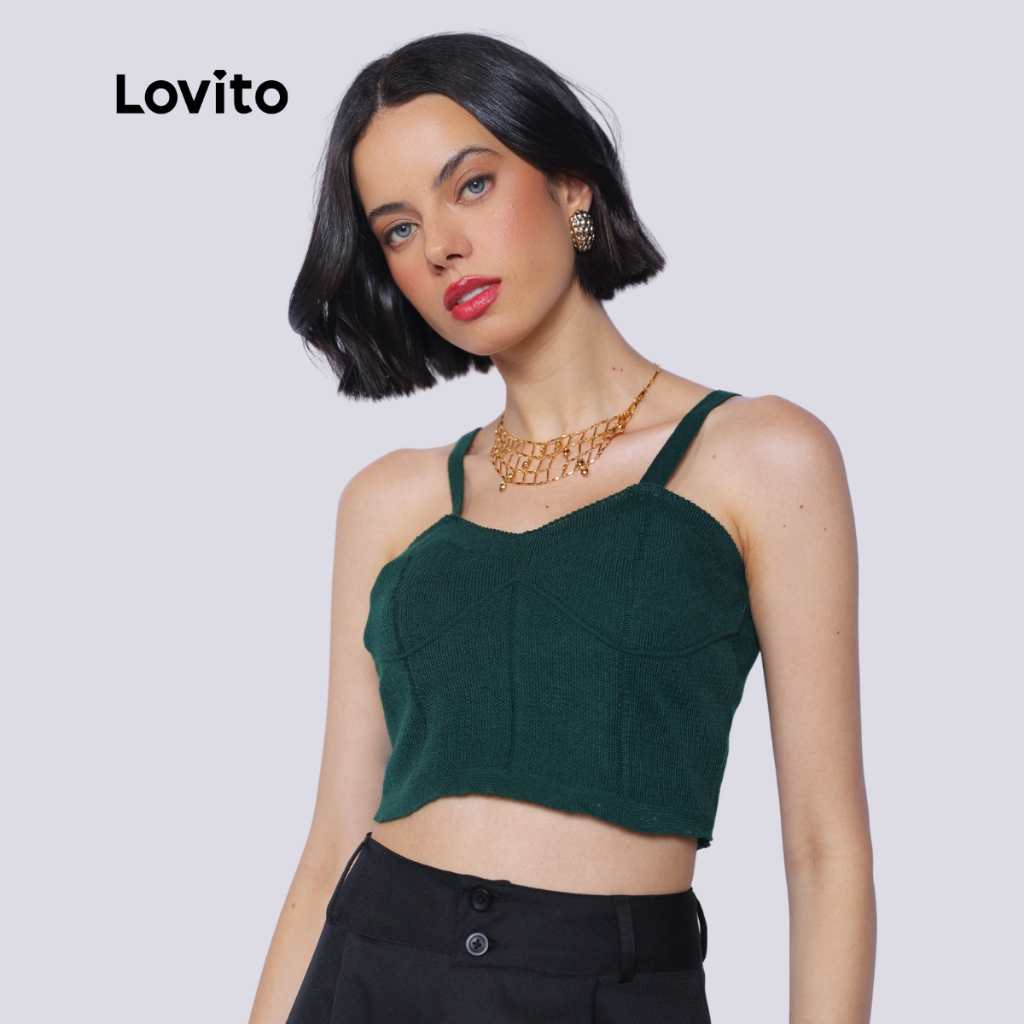 Lovito Top Cropped Alcas Fina Moda Tricot Corset LB1325BRL1355