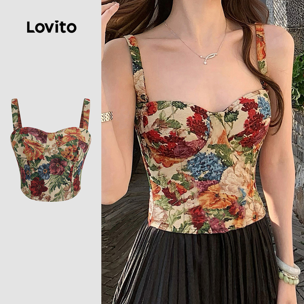 Lovito Top Elegante Com Estampa Floral E Flores, Regata De Verão/primavera Para Mulheres L132ED094