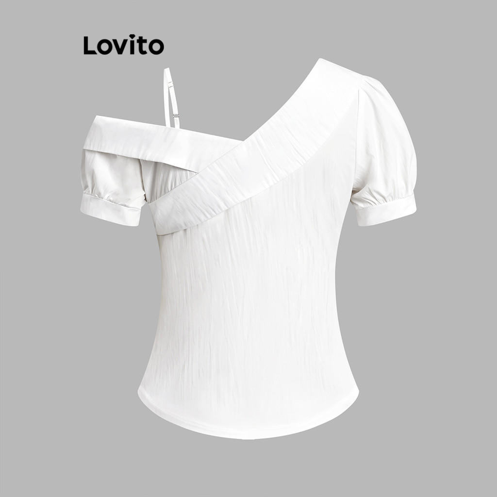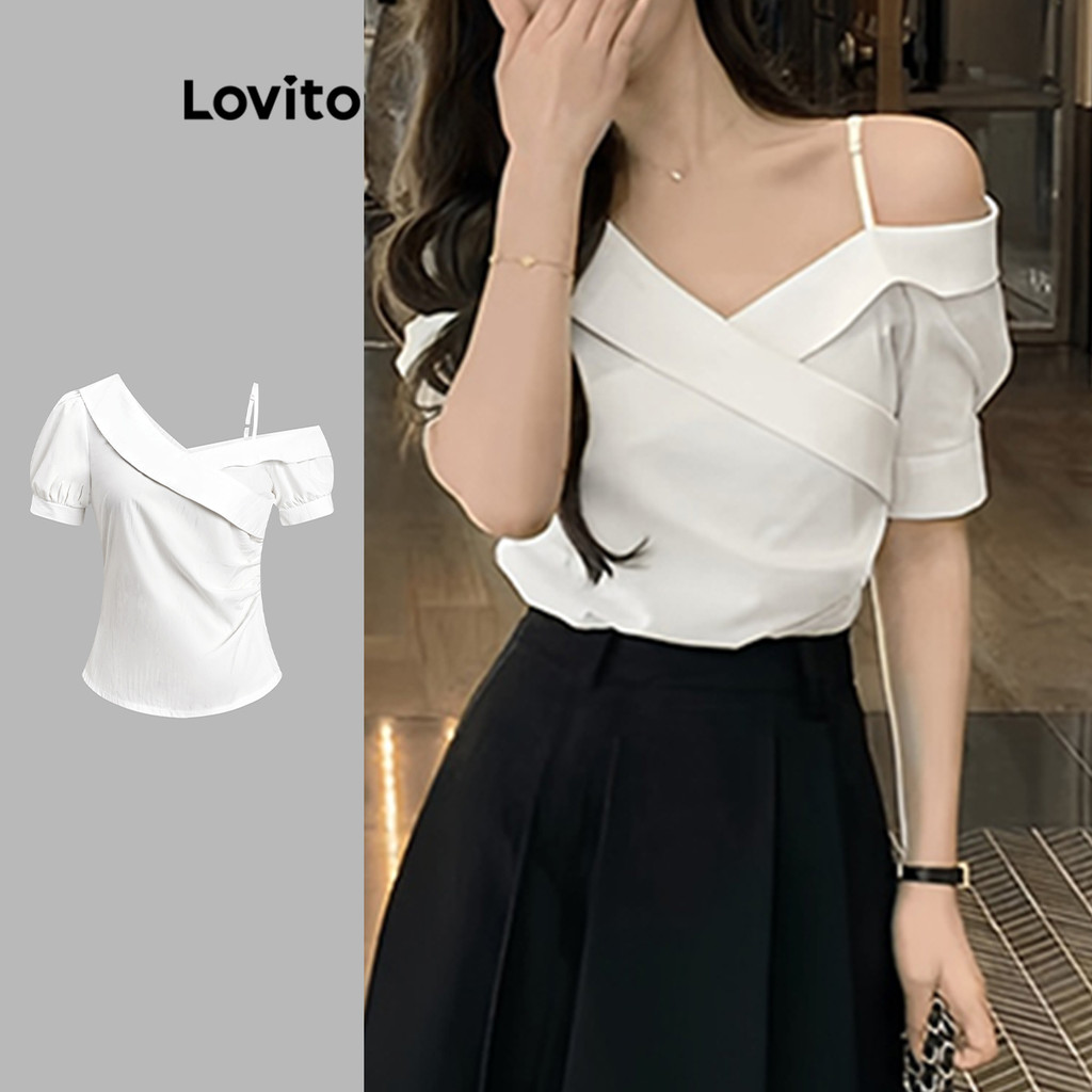 (Hot) Lovito Blusa Elegante Verão Ombro Frio Blusa Assimétrica Para Mulheres L121MD367