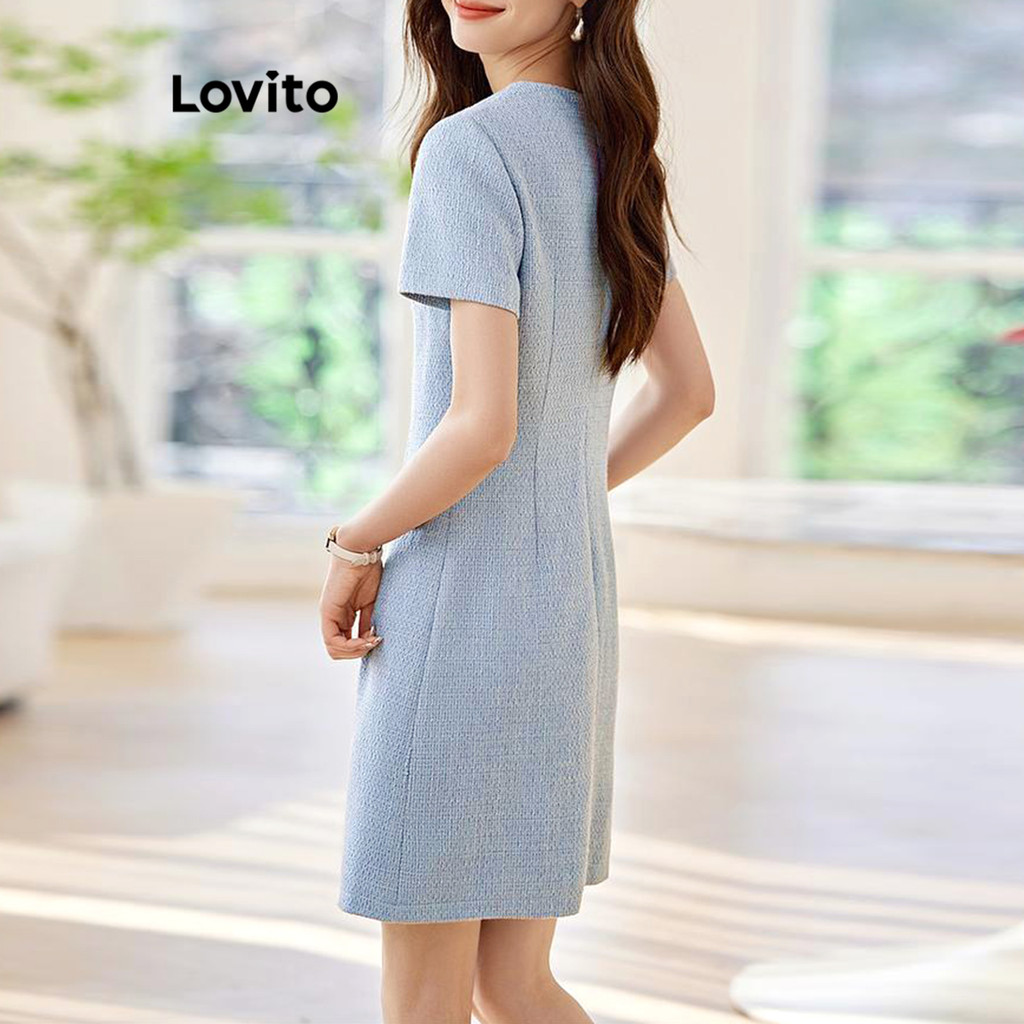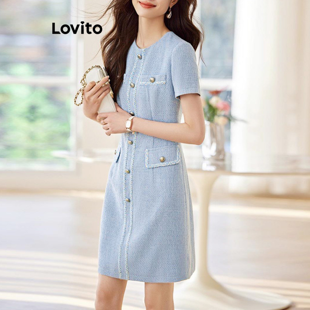 Lovito Vestido Feminino Com Bolso Falso e Botão Frontal para Verão e Primavera, Estilo Elegante, LNE59301