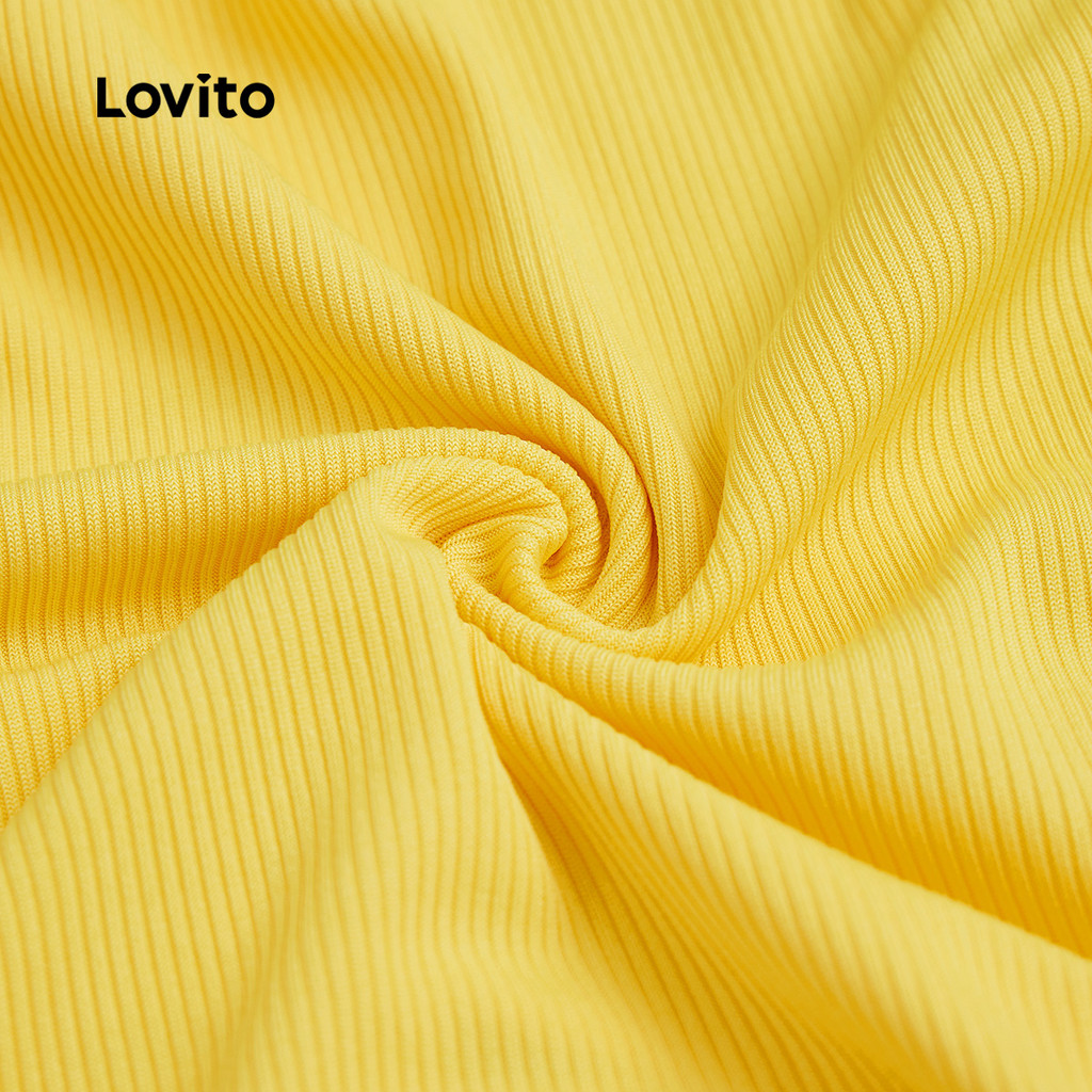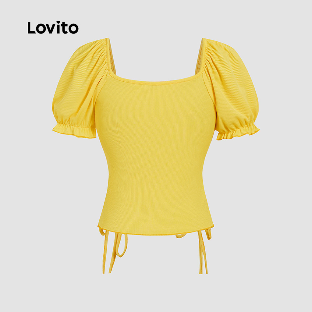 Lovito Camiseta Casual com Cadarço Franzida Primavera/verão Camiseta Amarela para mulheres L143ED484