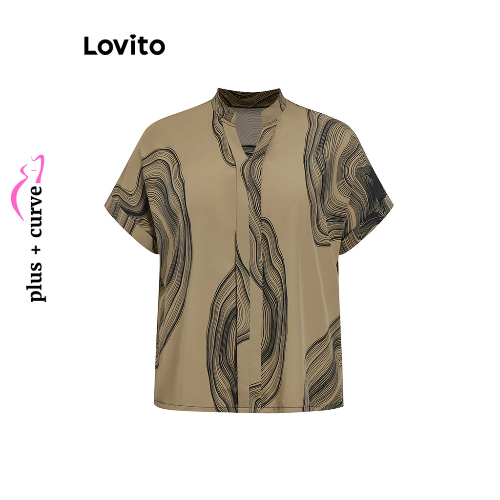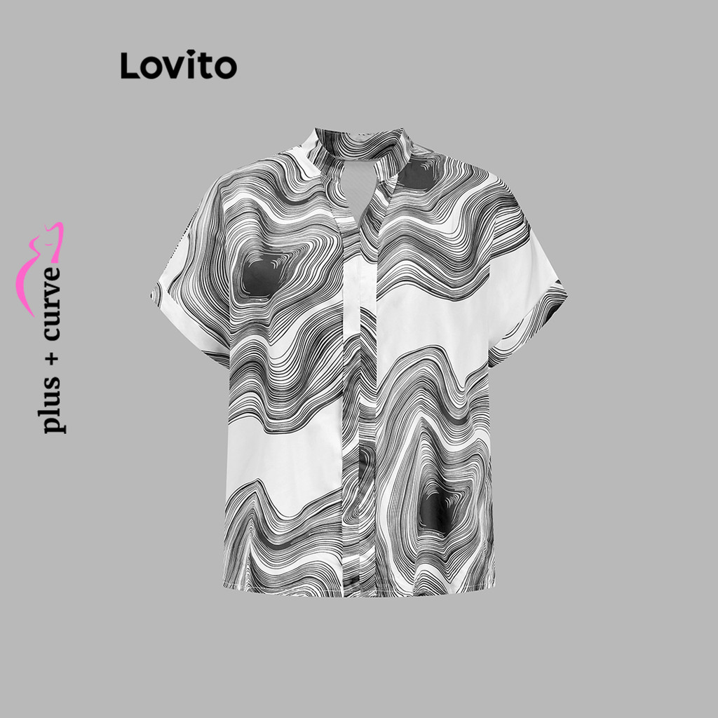 Lovito Blusa Feminina Plus Size Casual Estampa Mármore Curva LBL14370