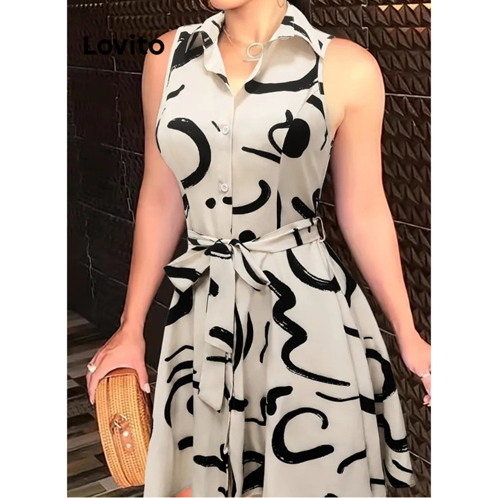 (Trendy2) Lovito Vestido Elegante Curva Plus Size Ditsy Floral Outono Inverno Vestido Para Mulheres LNL70130