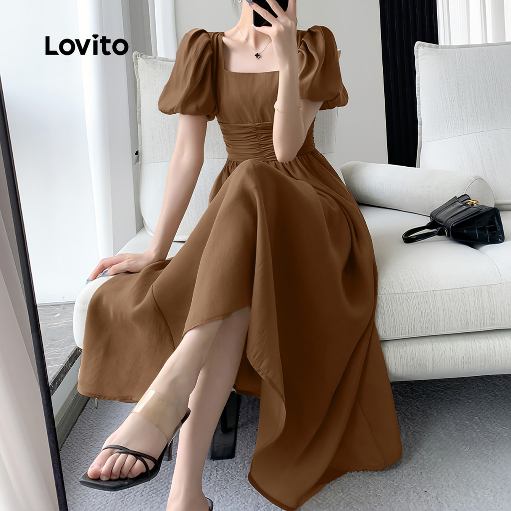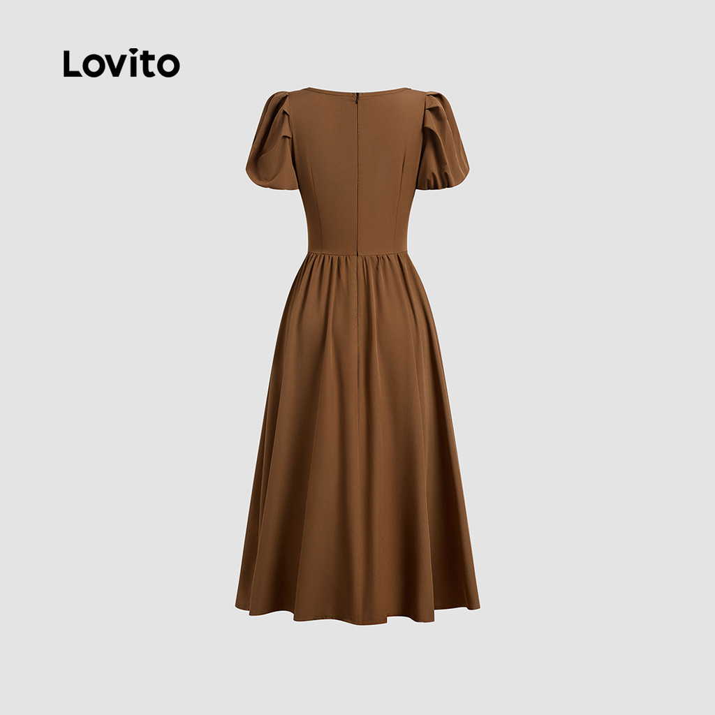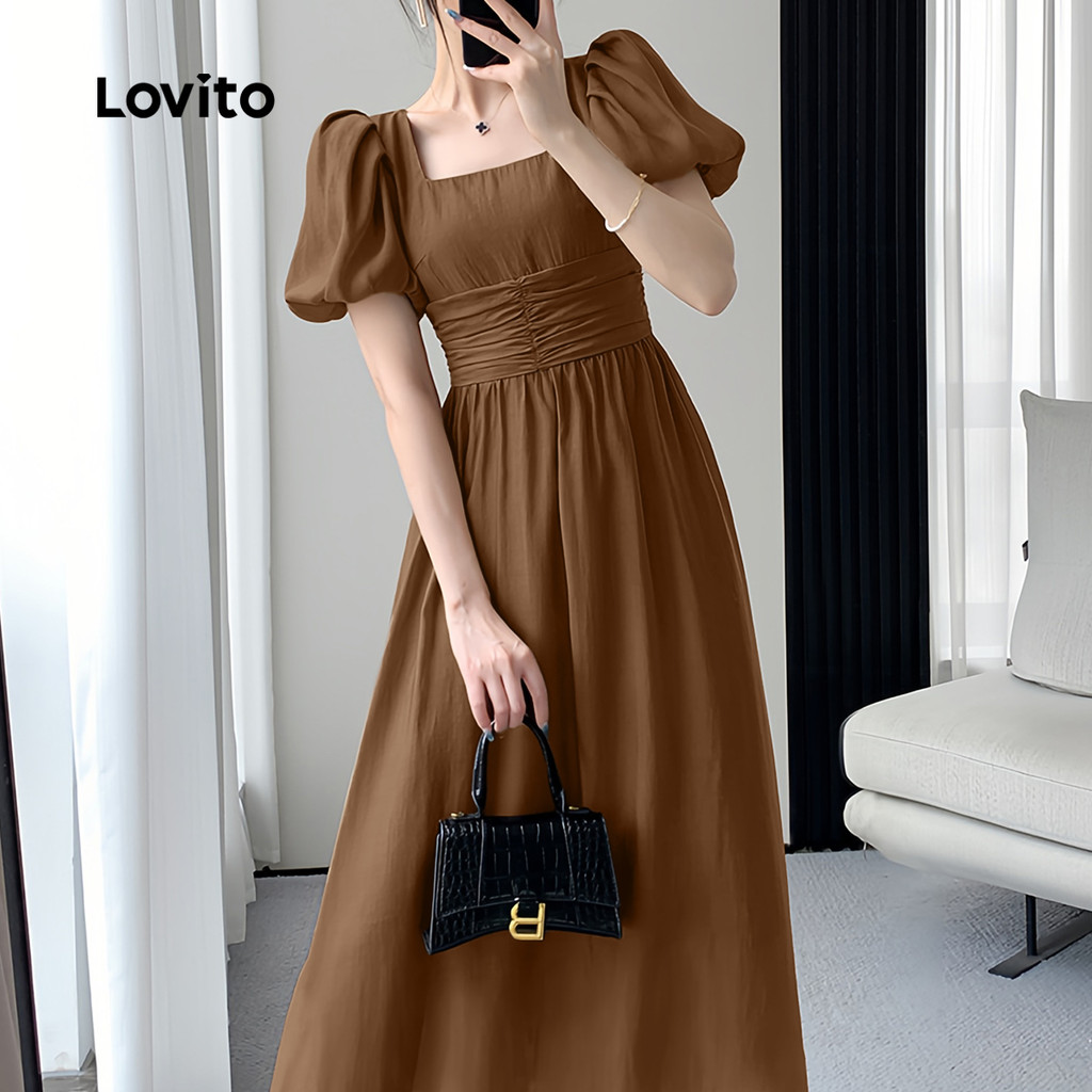 Lovito Vestido Feminino de Primavera/verão Casual Plissado Macio e Confortável Na Cor marrom L137ED127\3