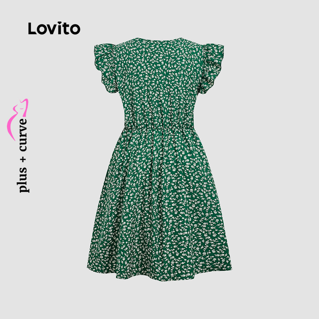 Lovito Vestido Boho com Babados Vestido Verde para Mulheres Primavera/Verão LBL31152