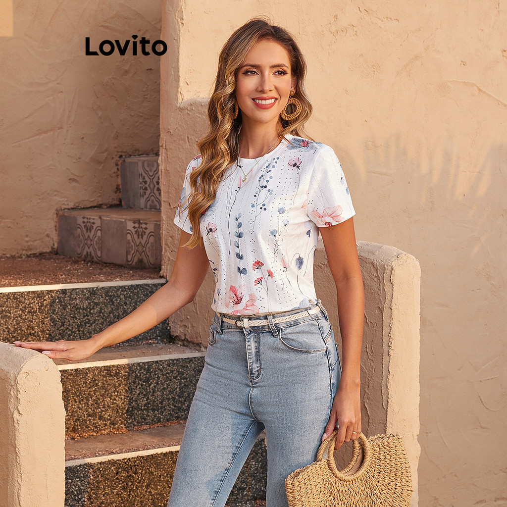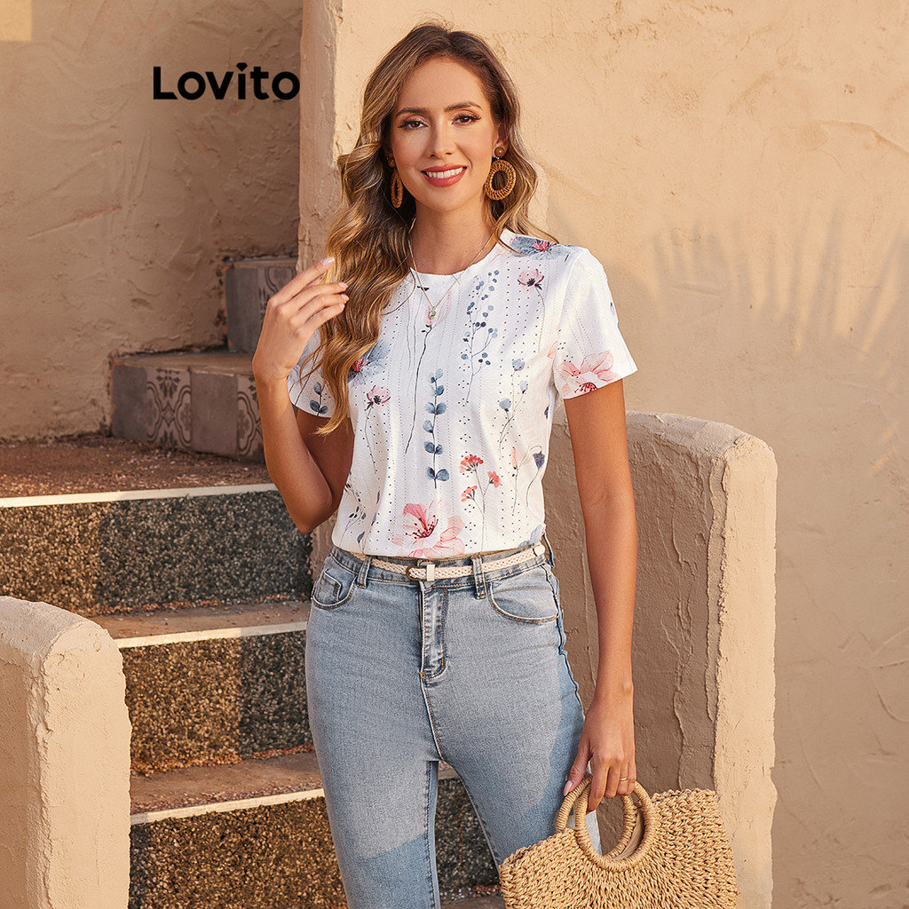 Lovito Refine Blusa Boho Jacquard Estampa Floral Feminina Verão Primavera LBL18859