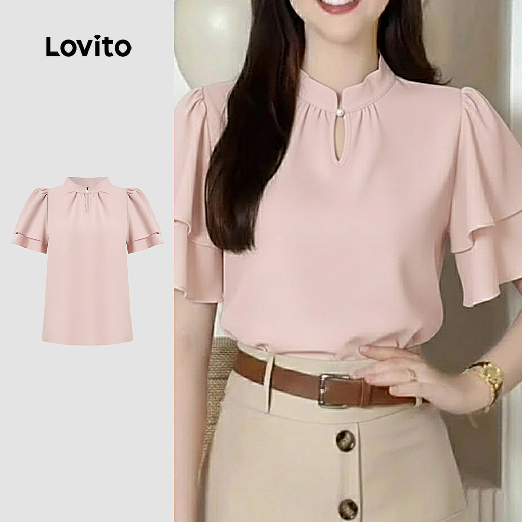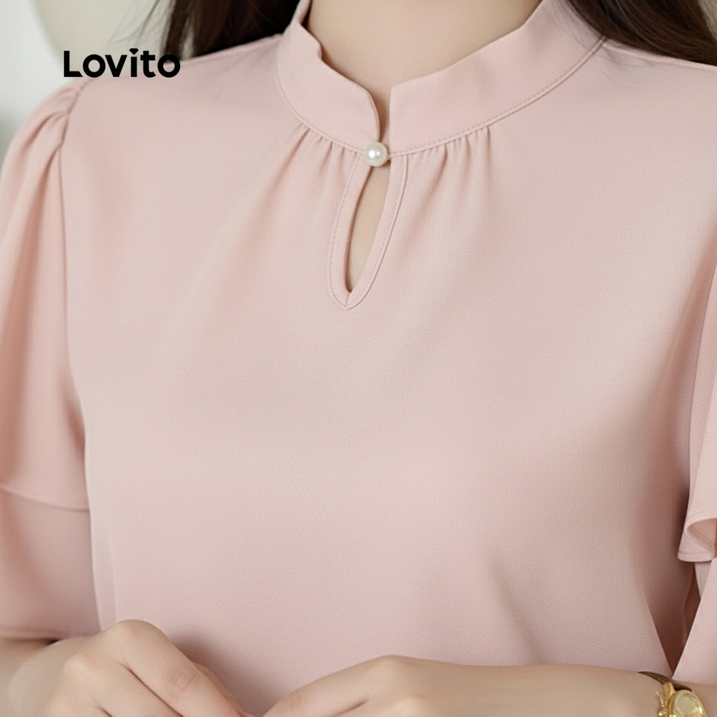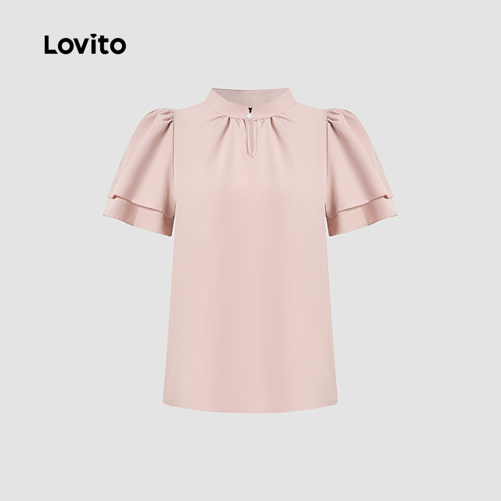 Lovito Blusa Casual Nova Estilo Chinês Babado Primavera/verão Blusa Rosa para Mulheres LK2ED207