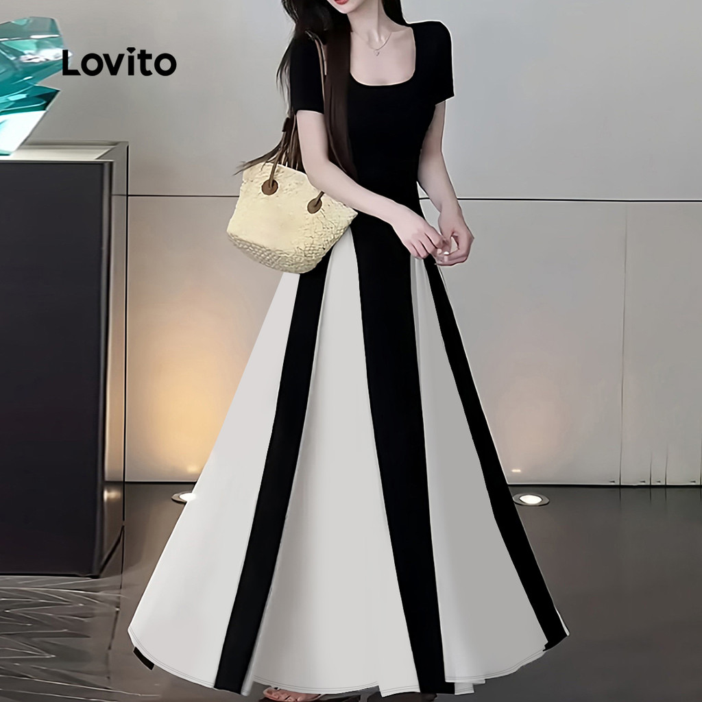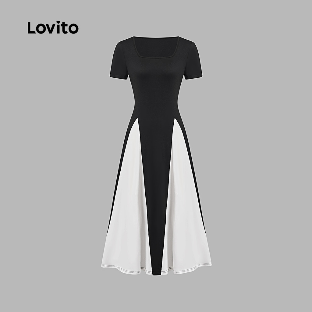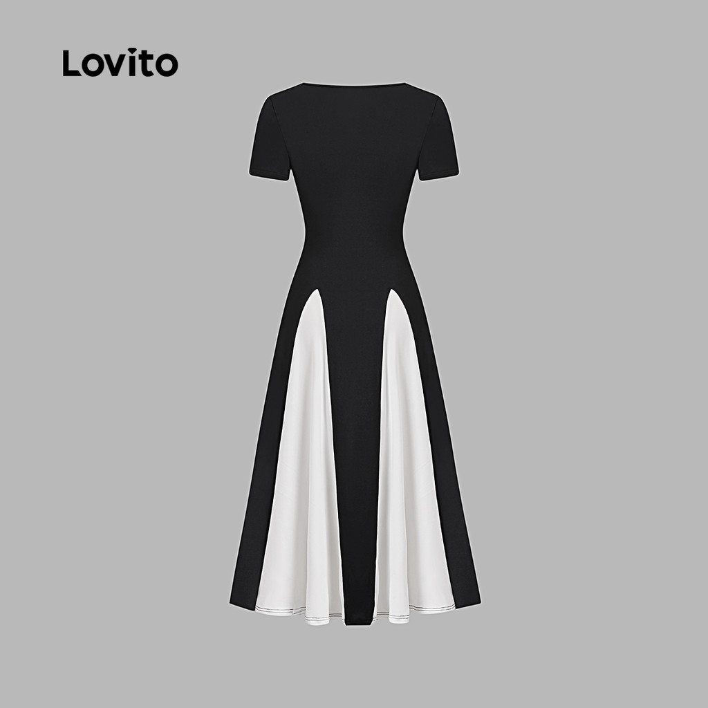 Lovito Vestido Casual Liso Colorblock Verão Primavera Preto E Branco Para Mulheres L134ED542