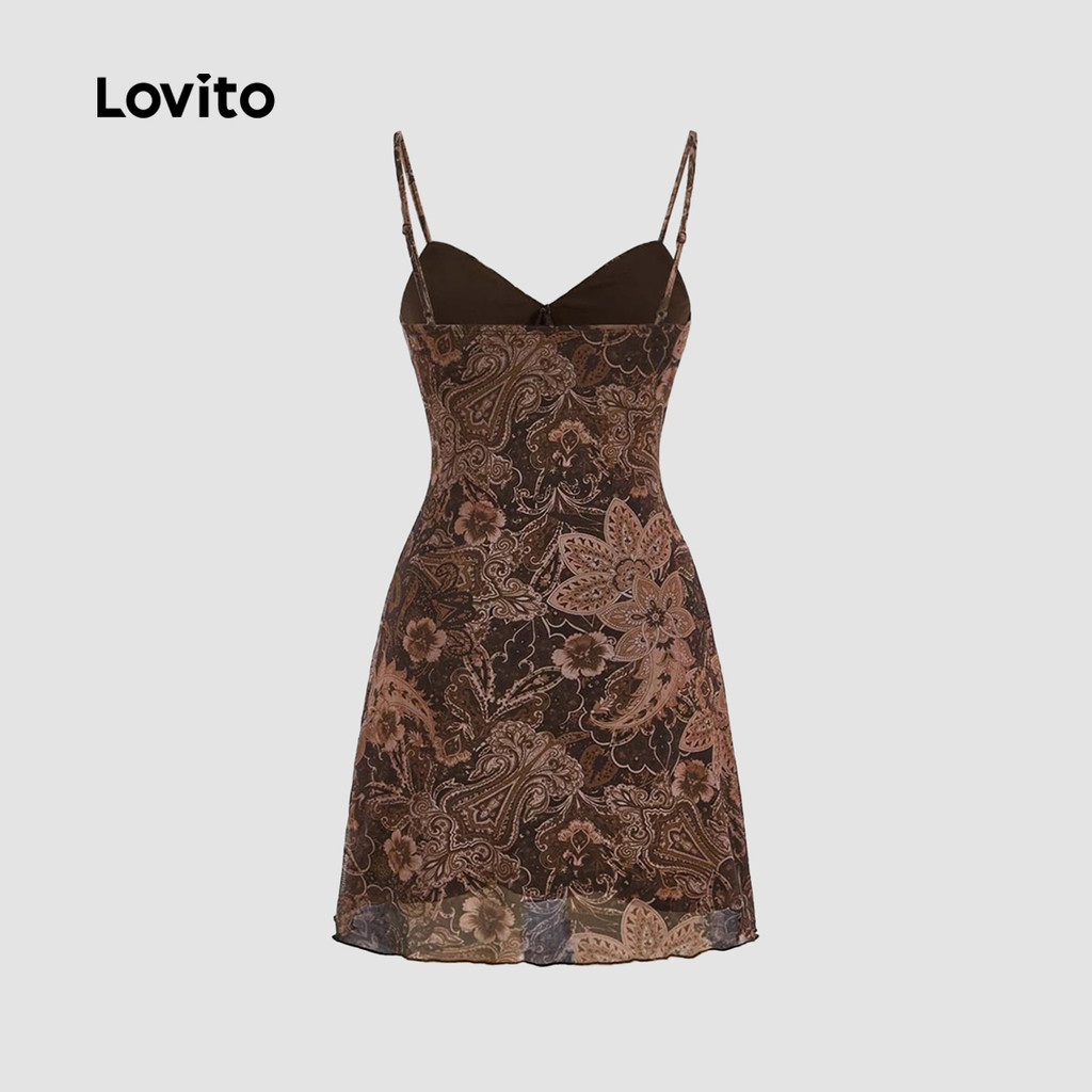 (Trendy) Lovito Vestido Casual Floral drapeado com fita contrastante para mulheres L125AD473