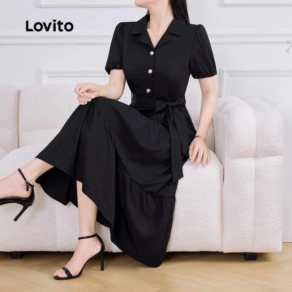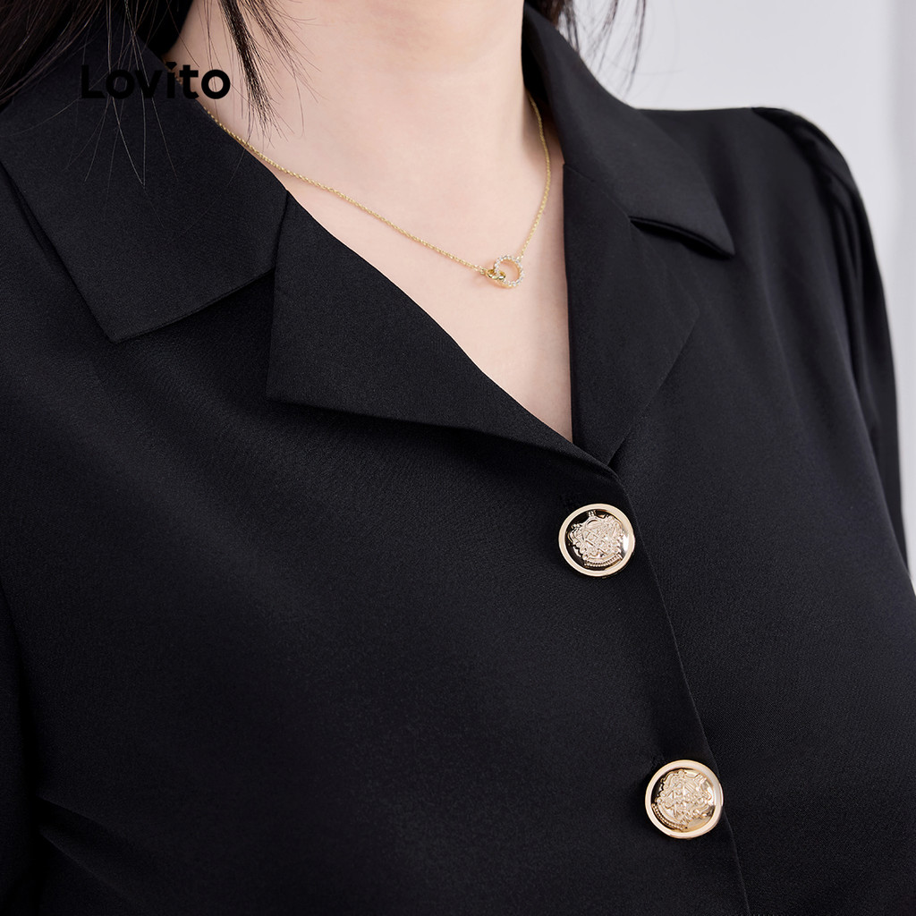 Lovito Vestido Elegante em Camadas com Metal Suspenso Primavera/verão Preto L142LD066