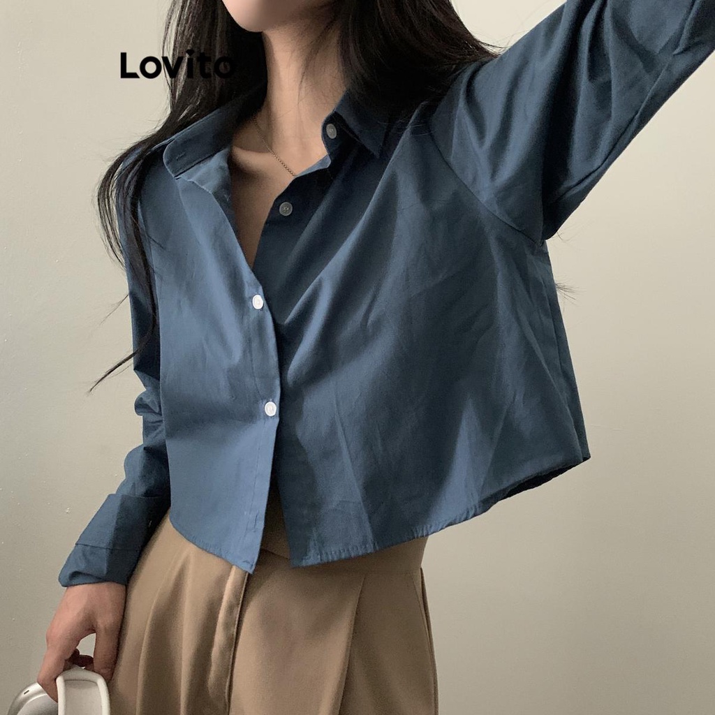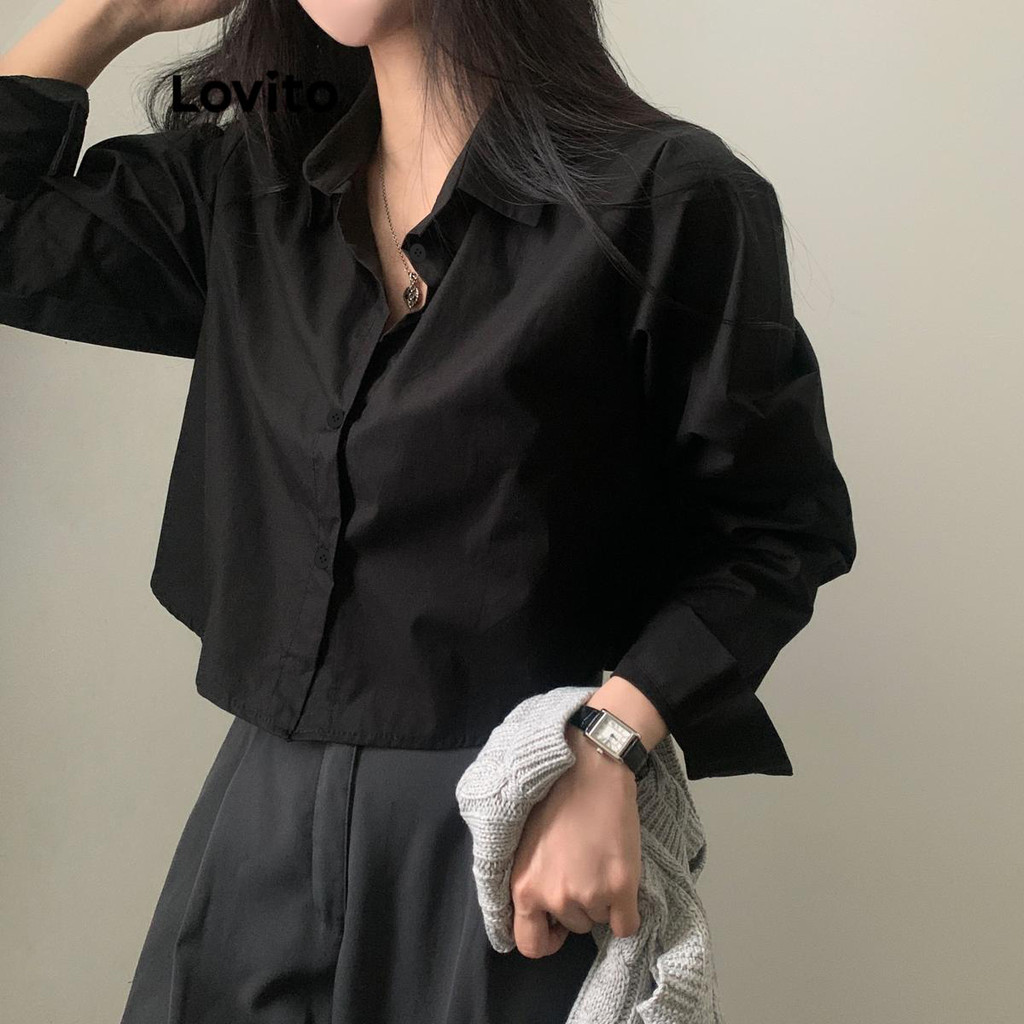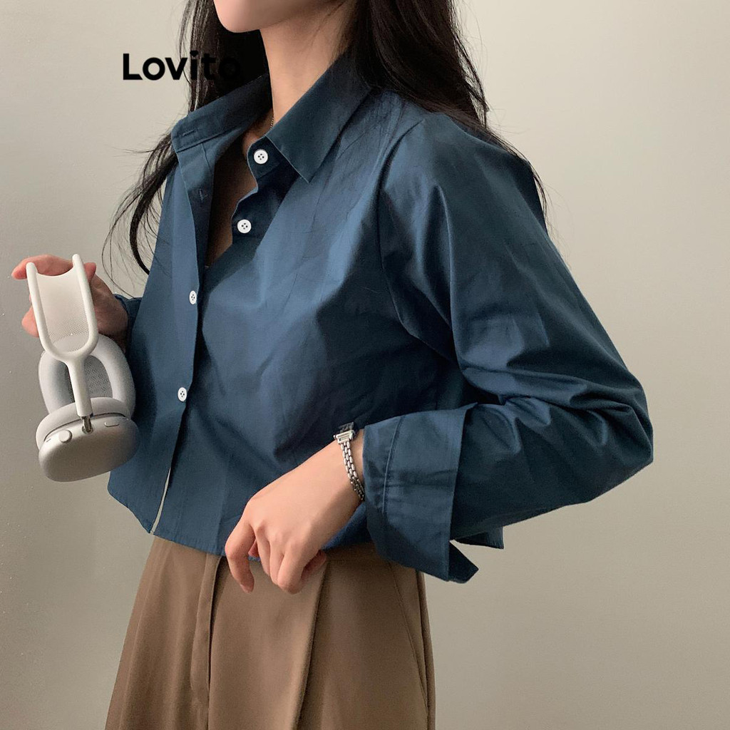 Lovito Blusa Feminina Básica de Verão/Primavera com Botão Frontal Casual LNE43603
