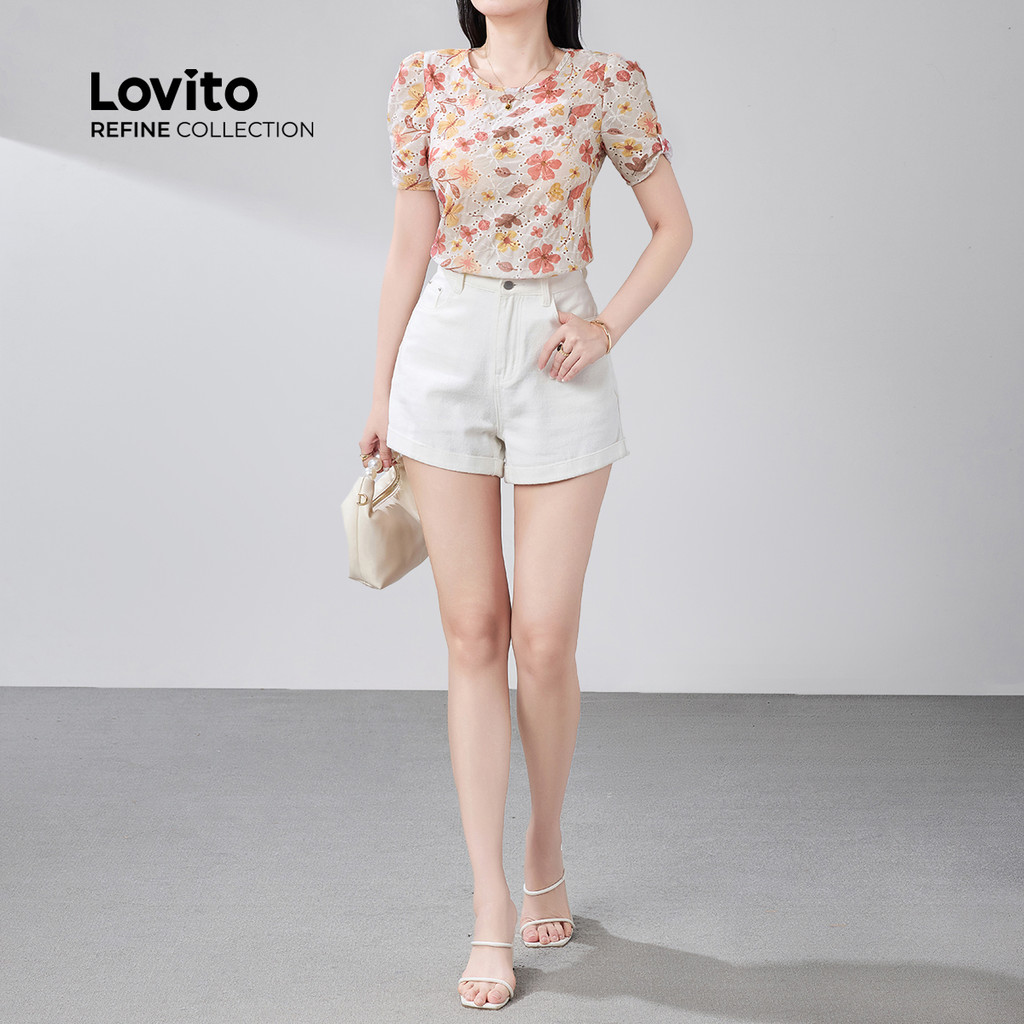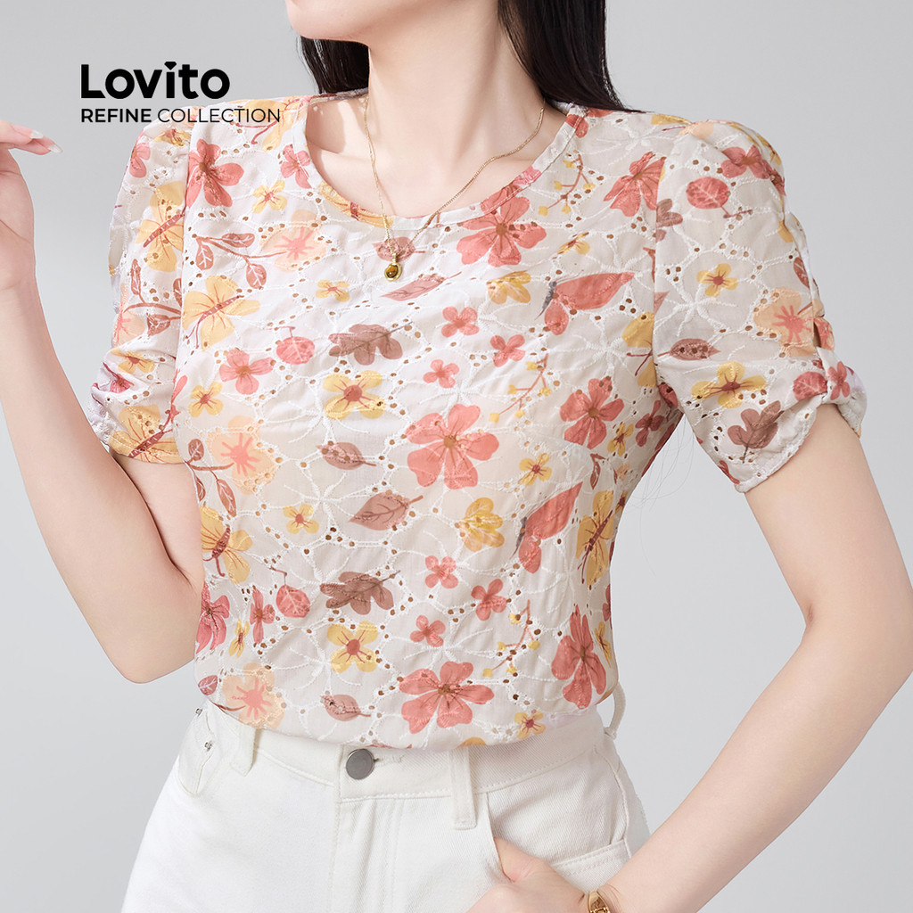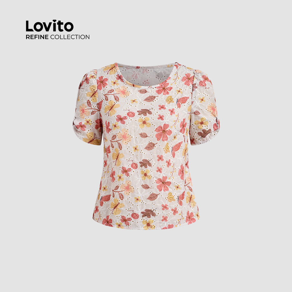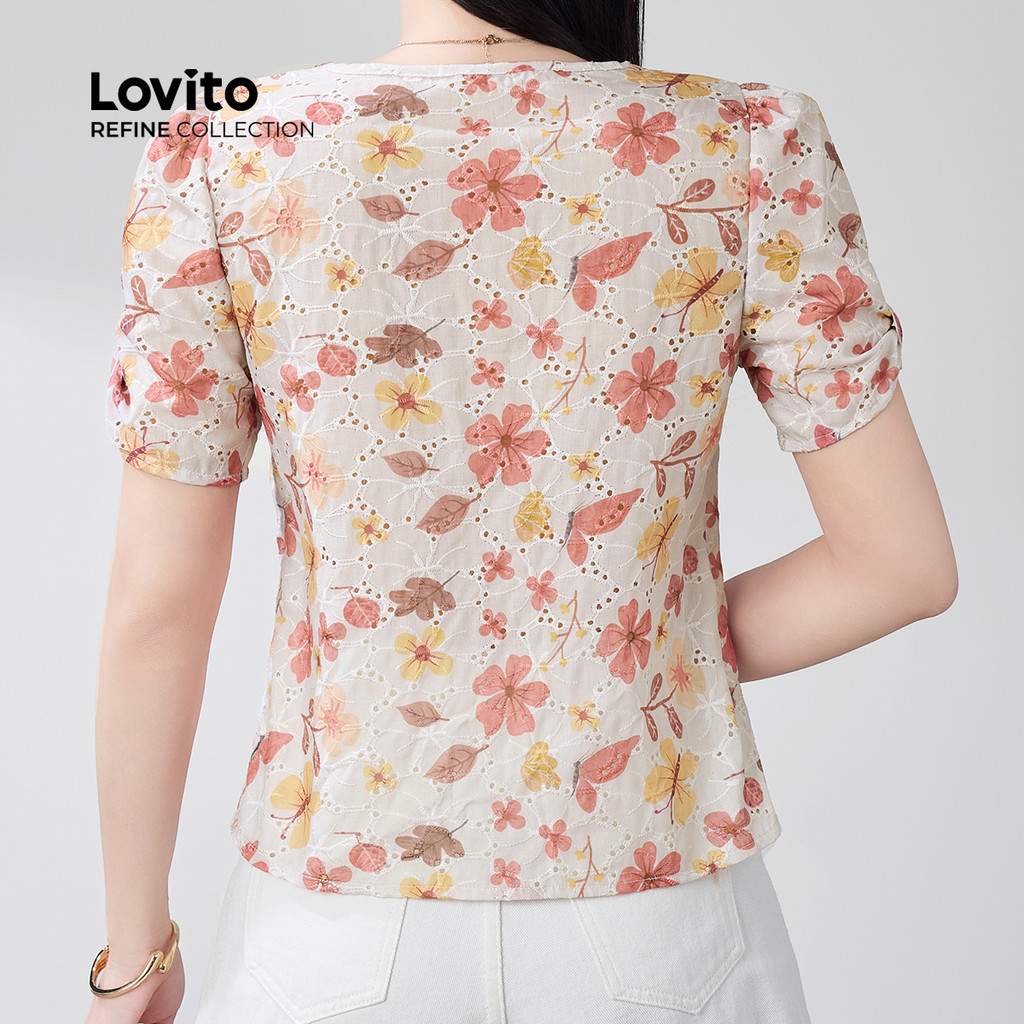 (Lovito Refine) Blusa Casual com Laço Bordado de Ilhós Primavera/verão Blusa multicolor LR21E203