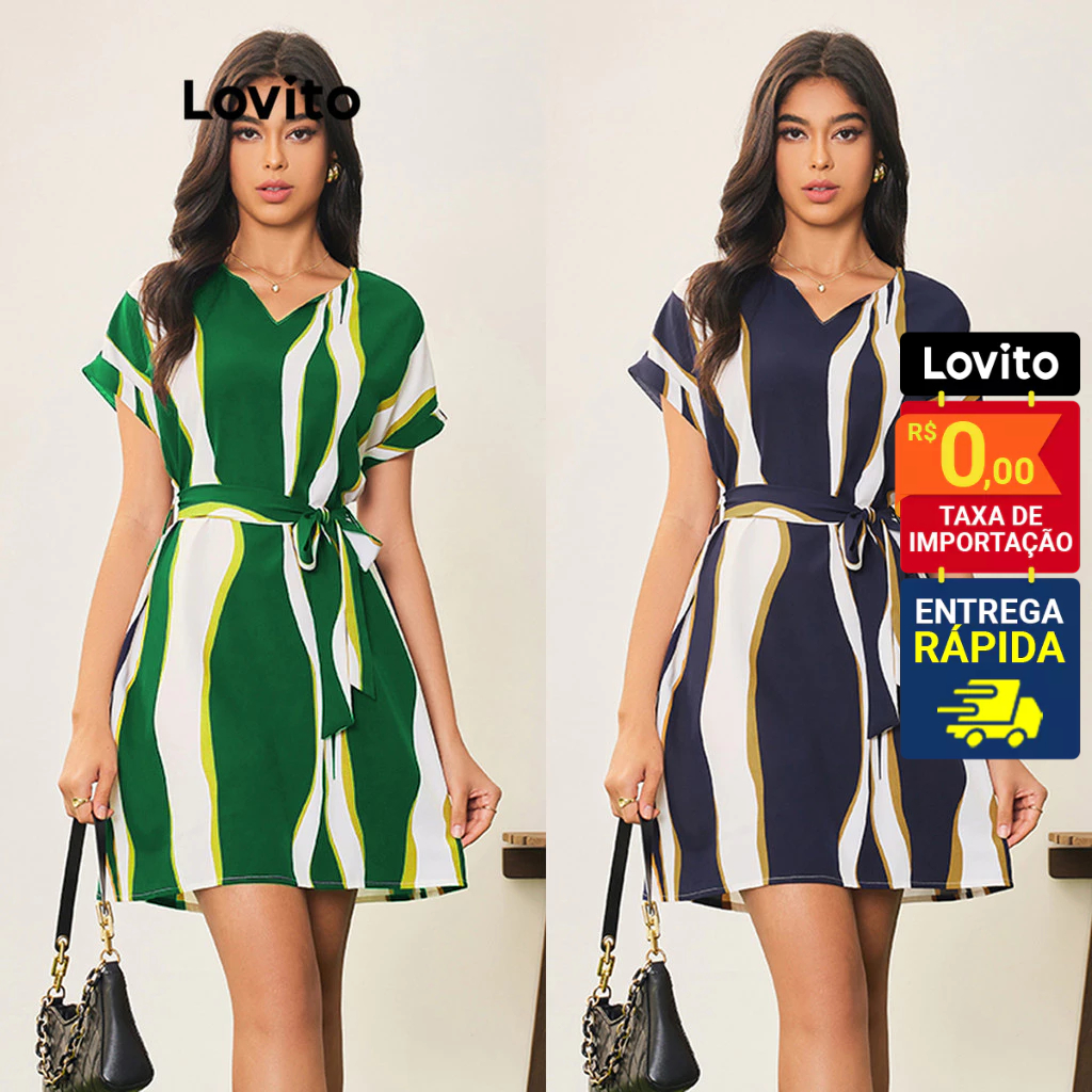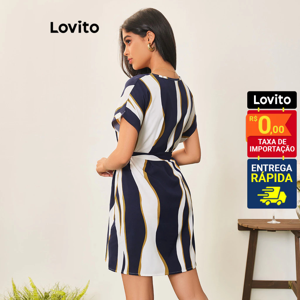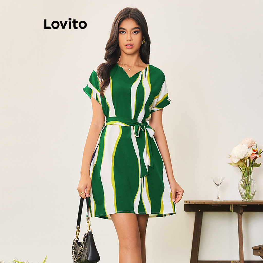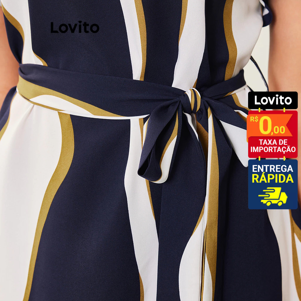 Lovito Casual Vestido Feminino Geométrico Amarrado LBA05044