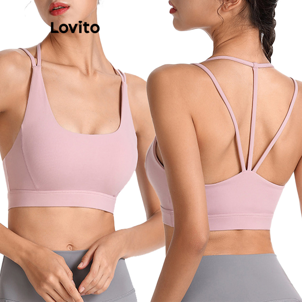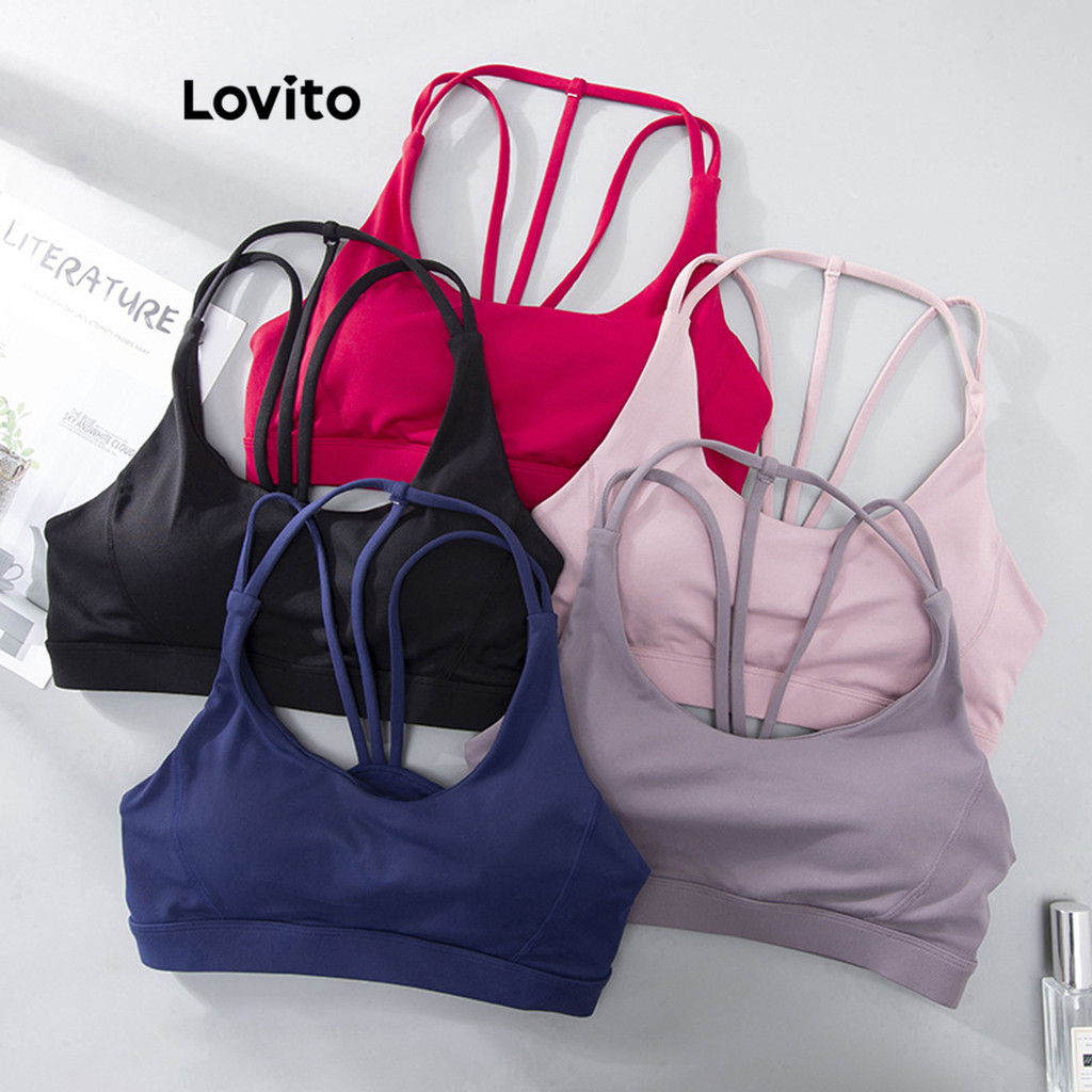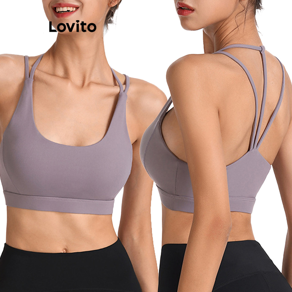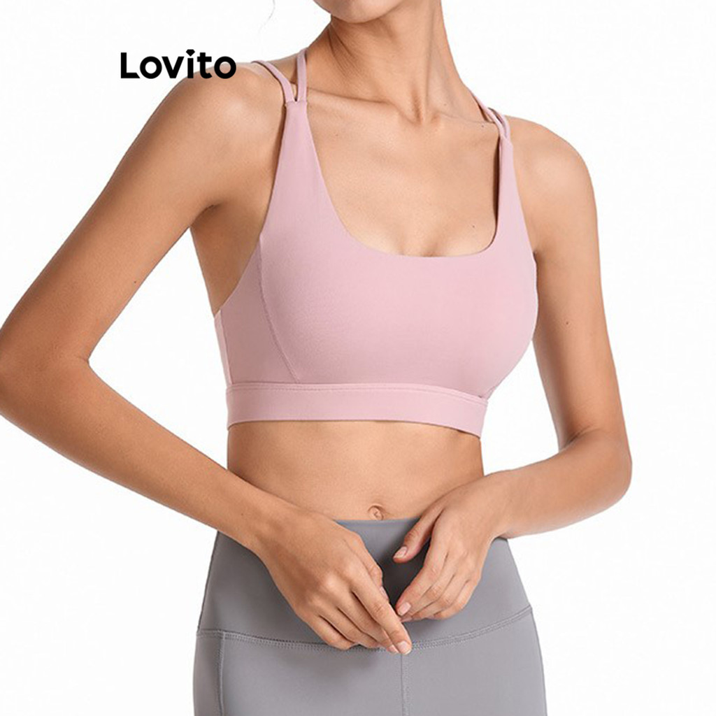 (Trendy) Lovito Sutiã esportivo esportivo liso de cor sólida para mulheres LNL77167